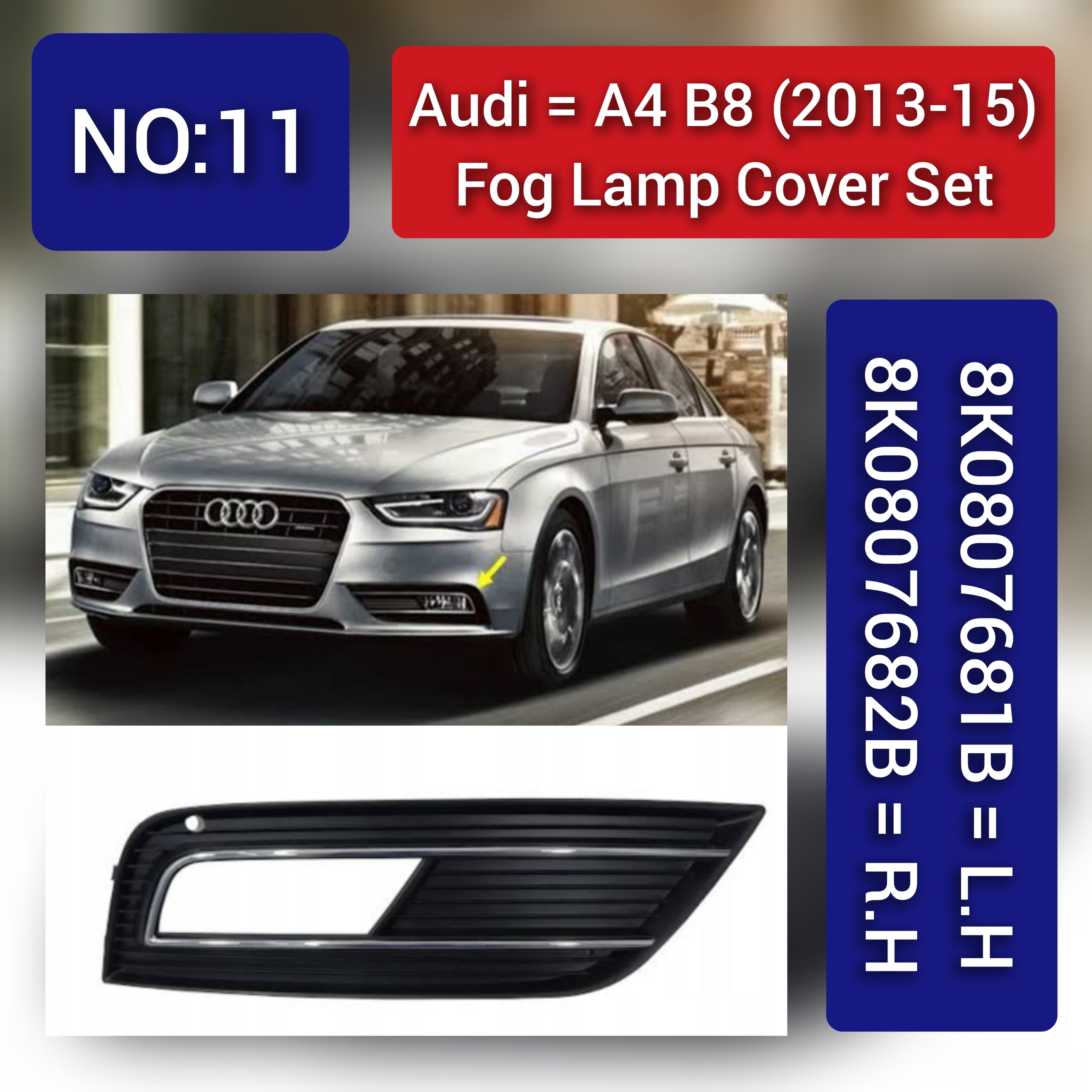 Fog Lamp Cover Compatible With AUDI A4 B8 2013-2015 Fog Lamp Cover Left 8K0807681B & Right 8K0807682B