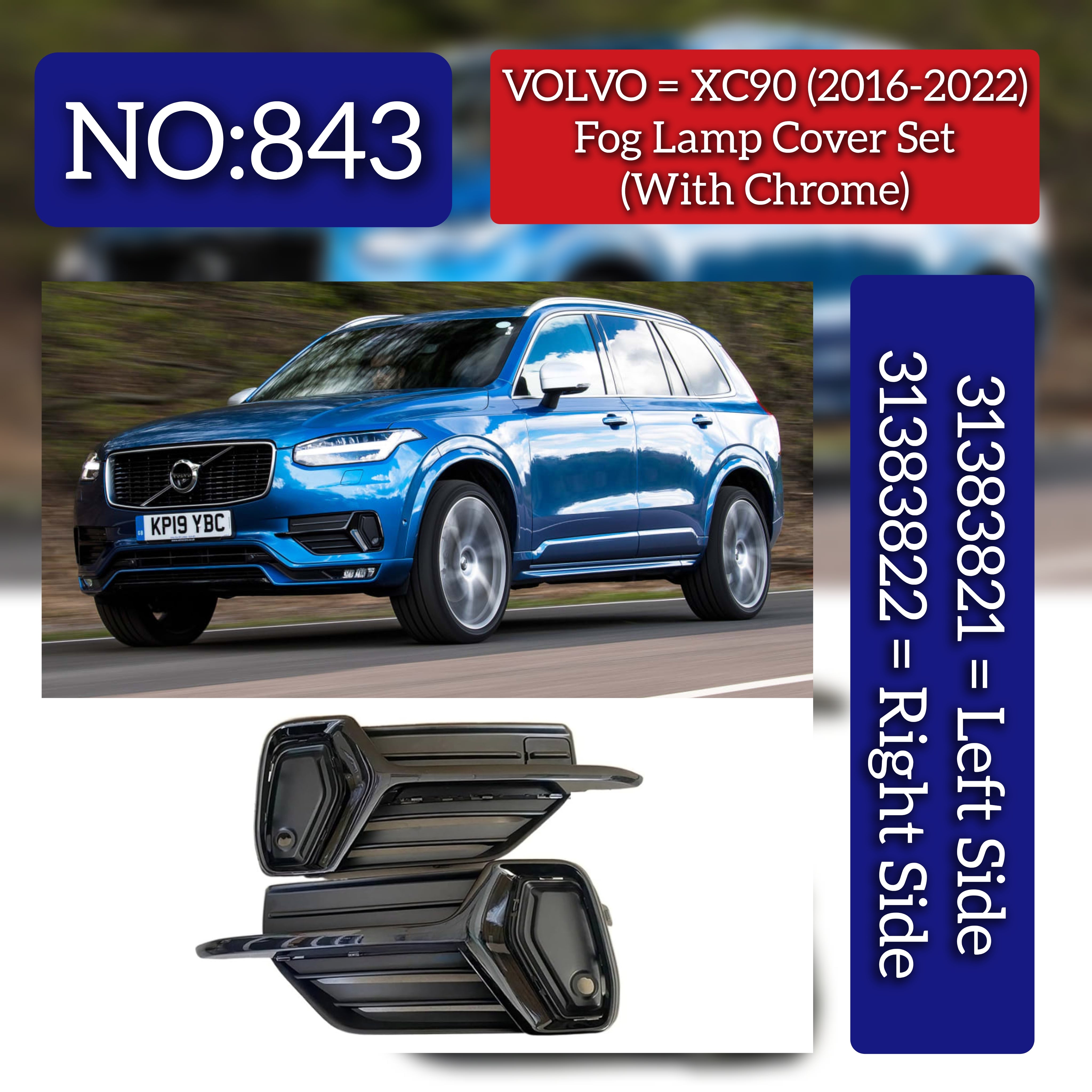 Enhance your Volvo XC90 I (275) with these precision-engineered fog lamp covers, part numbers 31383821 (Left) and 31383822 (Right). Designed for perfect compatibility, they provide reliable protection for your fog lamps against debris and weather elements, maintaining optimal lighting performance and vehicle aesthetics. These covers ensure a seamless fit, preserving the integrity and style of your vehicle while extending the lifespan of your fog lamps. Ideal for professional repairs or upgrades, they meet high-quality standards for durability and function.