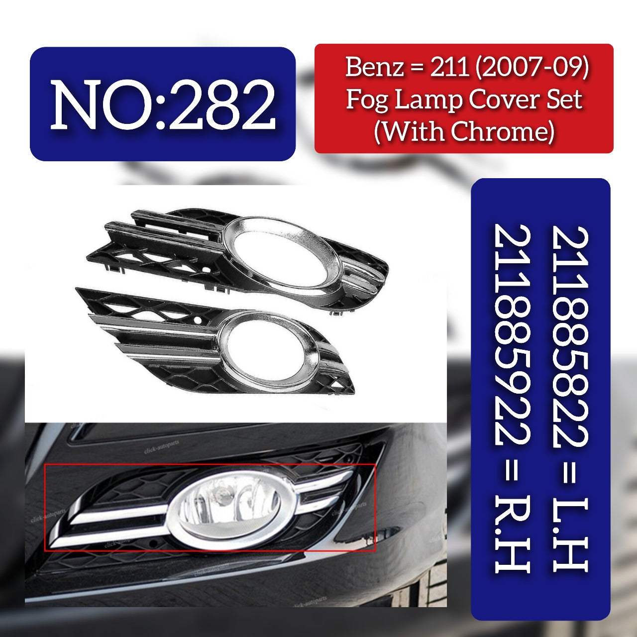 Enhance your Mercedes Benz 211 (2007-2009) with this Fog Lamp Cover Set featuring chrome accents for a refined look. Designed for perfect fitment, the left cover (2118850822) and right cover (2118850922) protect your fog lamps from damage while complementing your vehicle’s style. Durable and precise, this set ensures lasting performance and an expert finish.