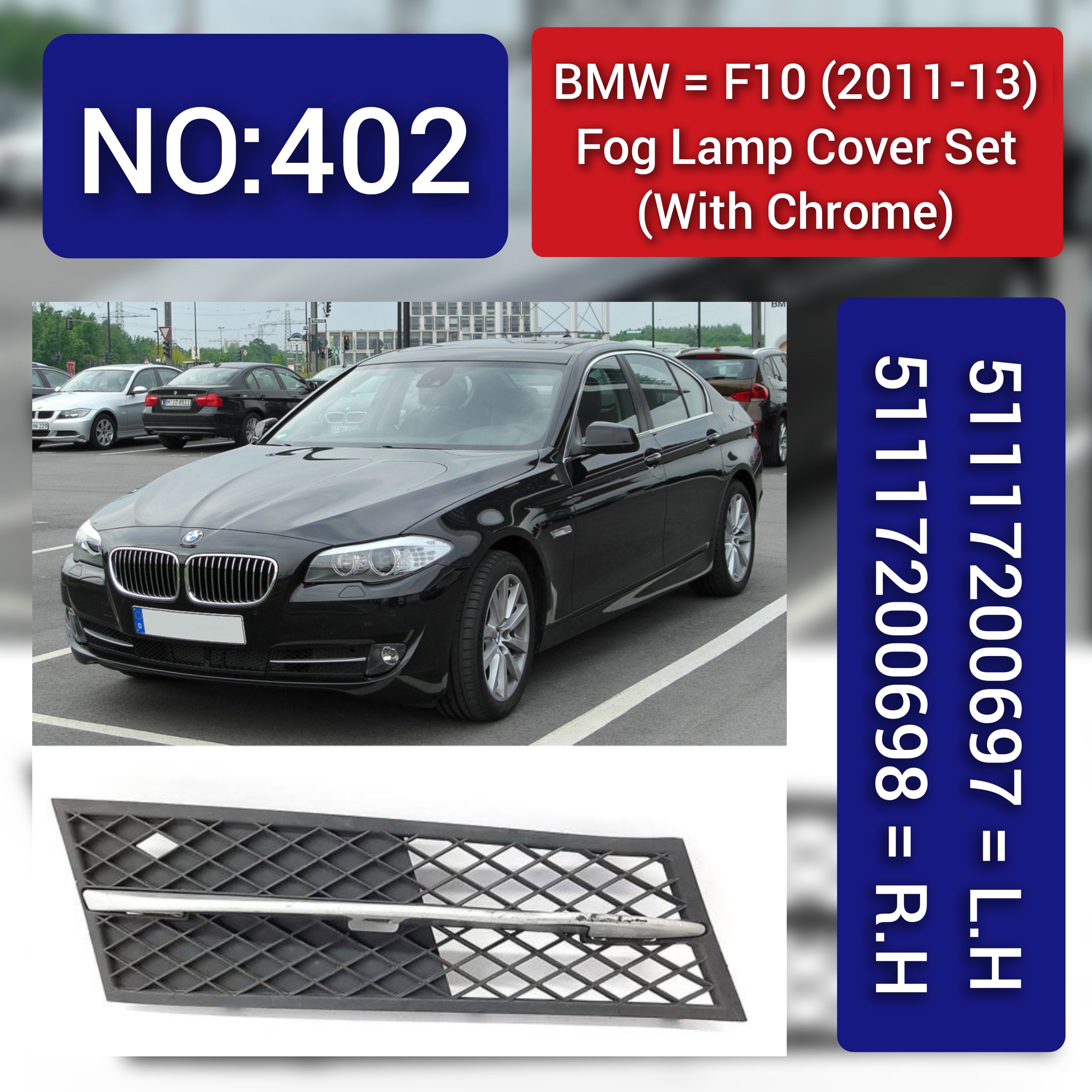 Fog Lamp Cover With Chrome Compatible With BMW 5 Series F10 2011-2013 Fog Lamp Cover With Chrome Left 51117200697 & Right 51117200698