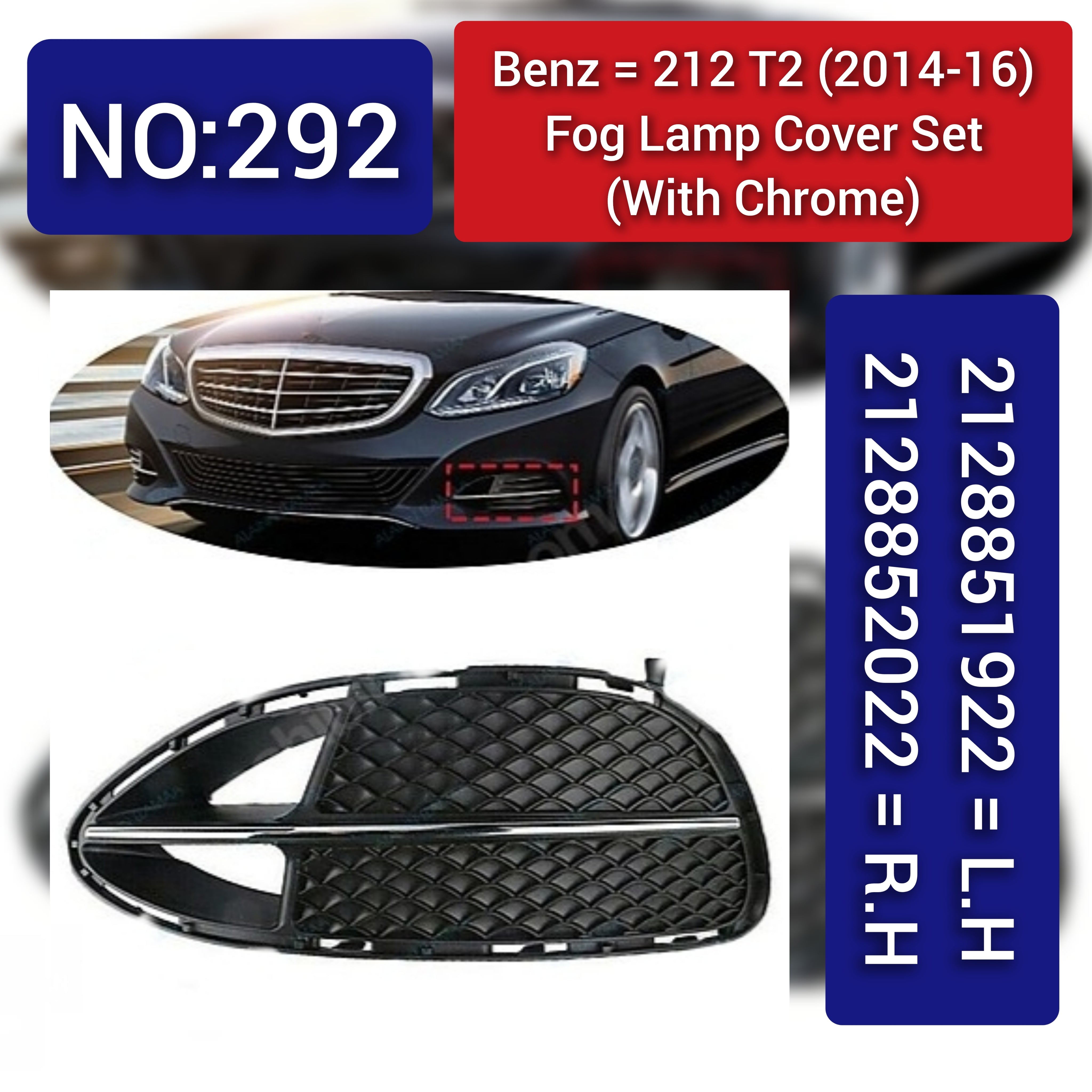 Fog Lamp Cover With Chrome Compatible With MERCEDES-BENZ E-CLASS W212 2014-2016 Fog Lamp Cover With Chrome Left 2128851523 & Right 2128851623