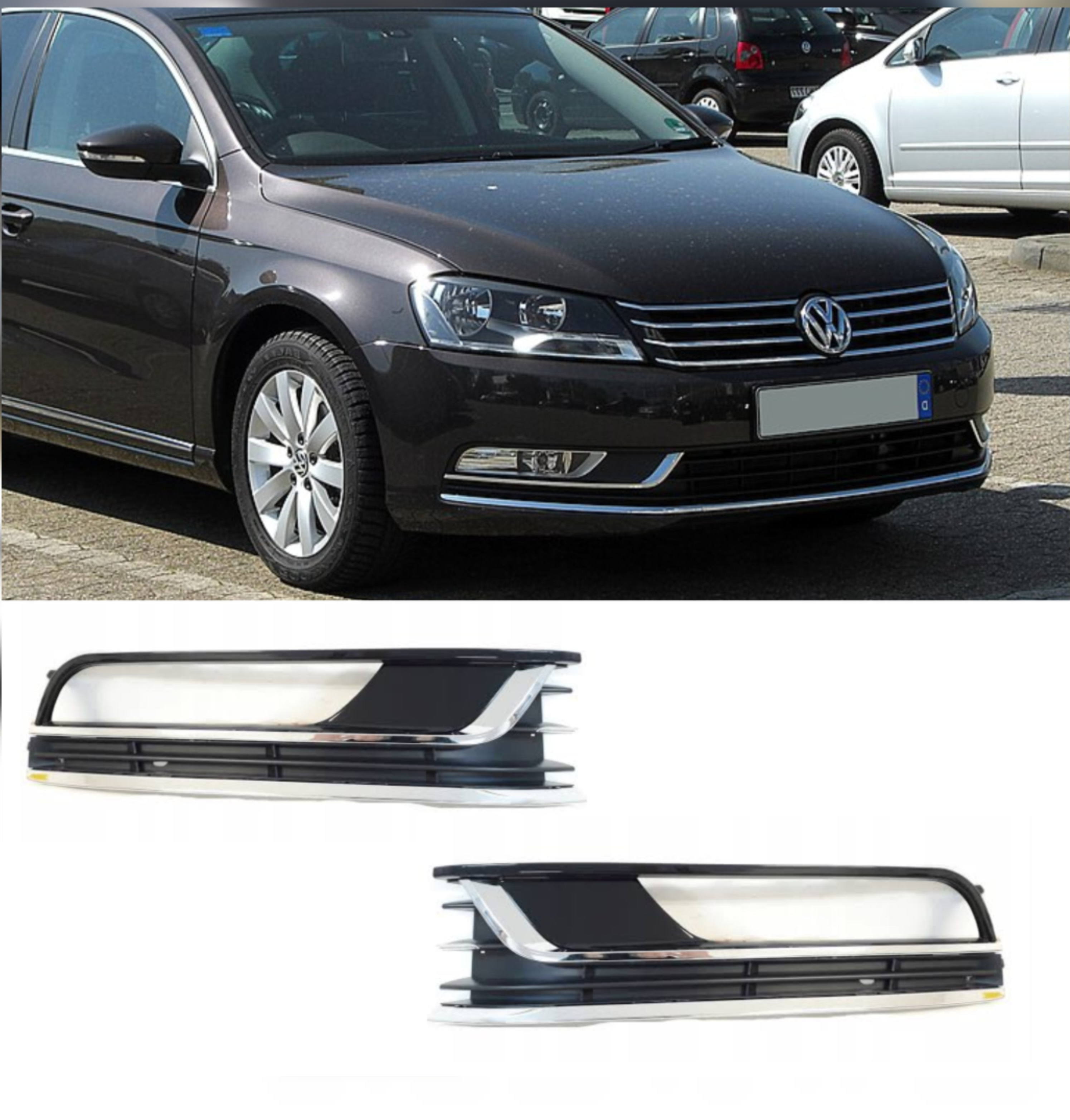 This Fog Lamp Cover set is designed specifically for VW Passat B7 models from 2010 to 2014. It includes left (3AA853665) and right (3AA853666) covers with a double chrome finish, accompanied by a protective mat. Engineered for exact fitment, these covers protect your fog lamps from damage while enhancing the vehicle’s front-end appearance. Manufactured to meet OEM standards, they offer durable protection and a refined look that complements the Passat B7’s design.