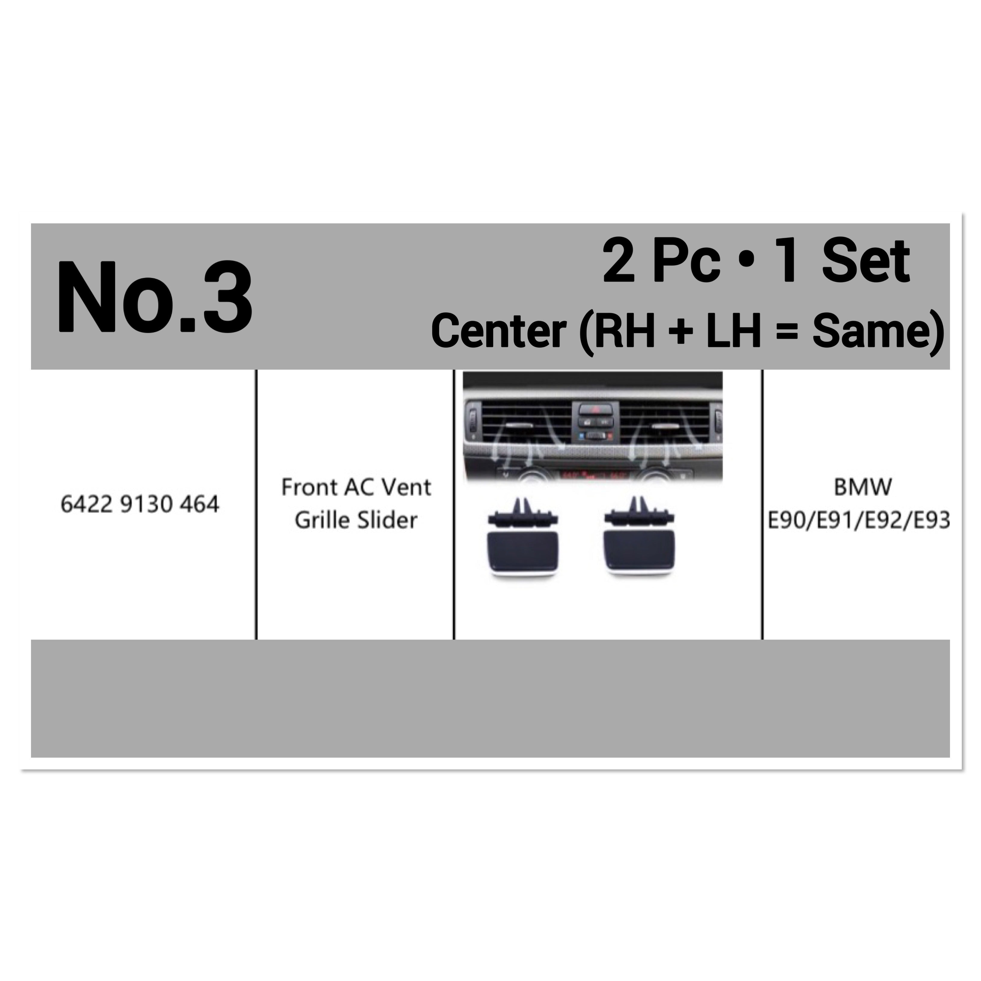 Effortlessly control the air flow in your BMW 3 series E90 E91 E92 E93 with our Front Air Conditioner Wind Volume Control Button AC Vent Grille Outlet Slider Clips Repair Kit. Compatible with 64229130464 and 64229130458 models, this kit includes both the center R.H and L.H sliders for a seamless fix. Increase your driving comfort and convenience with ease.