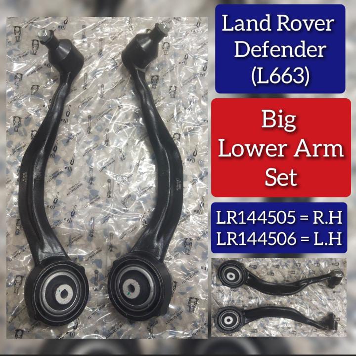 Upgrade your LAND ROVER DEFENDER or DISCOVERY V with our compatible Front Big Lower Arm Set. Expertly designed for maximum performance, this set provides a sturdy and durable support system for your vehicle's front end. LR144505 and LR144506 options ensure a perfect fit for both right and left sides.