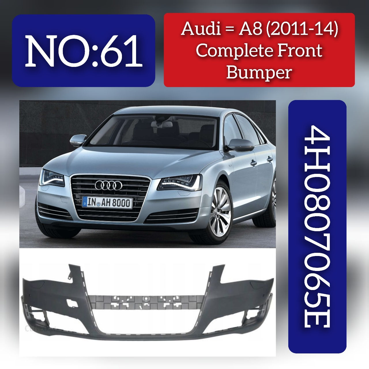 Upgrade your vehicle with our premium Front Bumper 4H0807065E. Compatible with AUDI & A8 D4 (4H2, 4H8, 4HC, 4HL) models, this high-quality bumper is designed to enhance the look of your car while providing durable protection. Trust our expertly crafted bumper to elevate your driving experience.