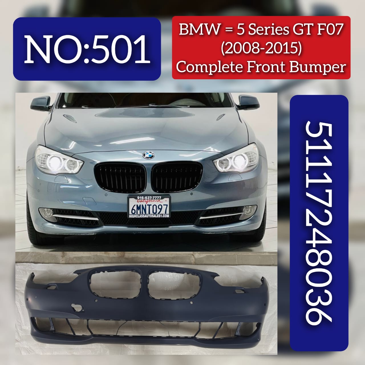 Expertly crafted and designed for the BMW 5 Gran Turismo (F07)Tag No.501, this Front Bumper 51117248036 delivers superior compatibility and functionality. Its sleek and sturdy construction provides reliable protection and a seamless look for your vehicle. Upgrade your driving experience with this high-quality front bumper.
