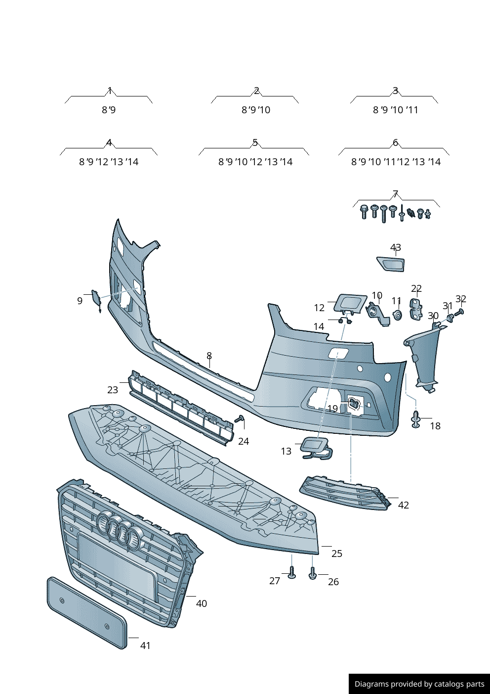 The Front Bumper 8W0807065D is a precise replacement part compatible with the Audi A4 8W model. Manufactured to meet strict quality standards, it ensures an exact fit and restores the vehicle’s original front-end protection. This bumper is ideal for professional installations, maintaining both the safety and aesthetic integrity of your Audi A4.