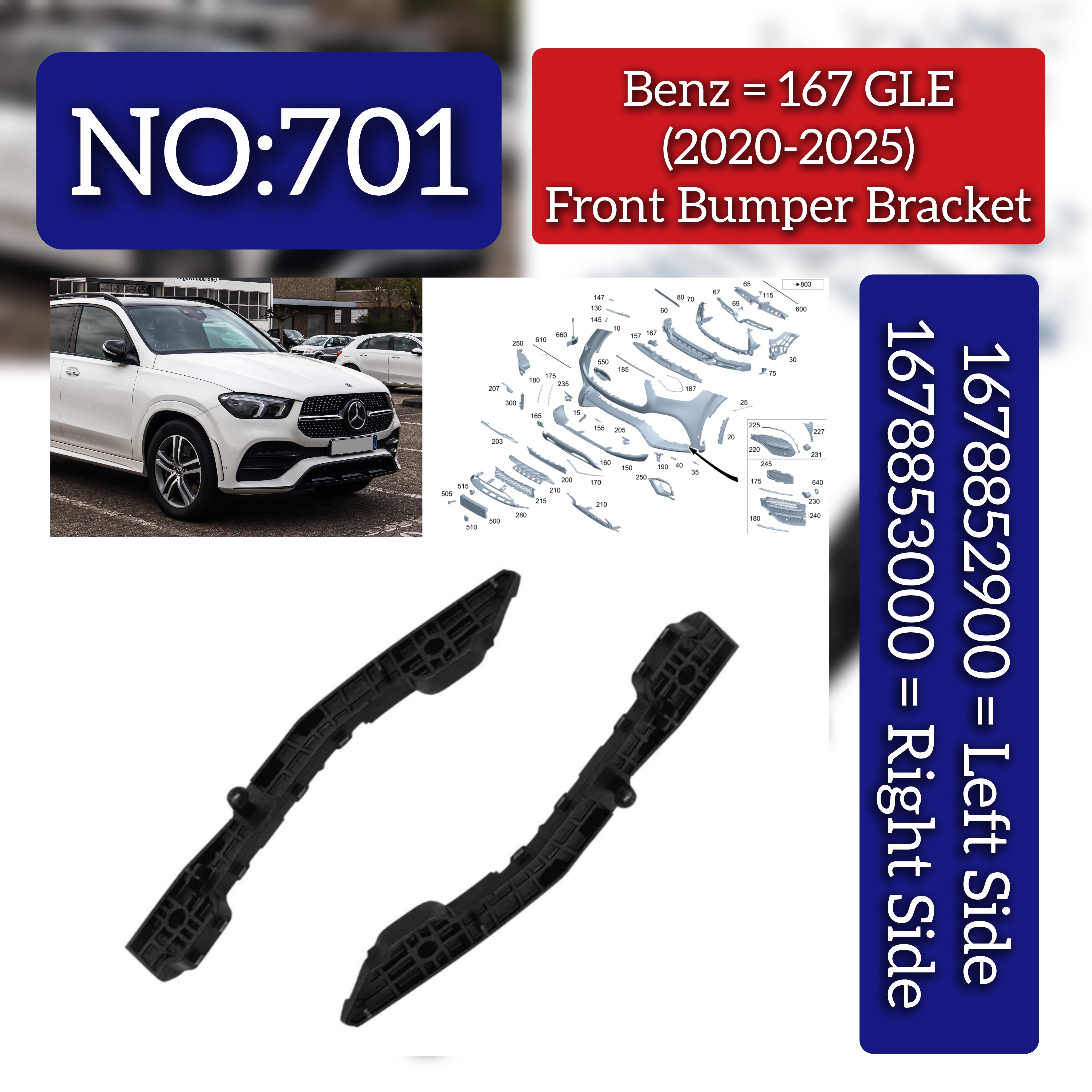 Designed specifically for the Mercedes-Benz GLE Class W167 (2020-2025), these front bumper brackets (left 1678853000 and right 1678853000) ensure precise fitment and reliable support. Manufactured to OEM standards, they provide structural integrity to the bumper assembly, enhancing safety and maintaining the vehicle’s original alignment. Ideal for professional repairs or replacements, these brackets help preserve the performance and appearance of your GLE.