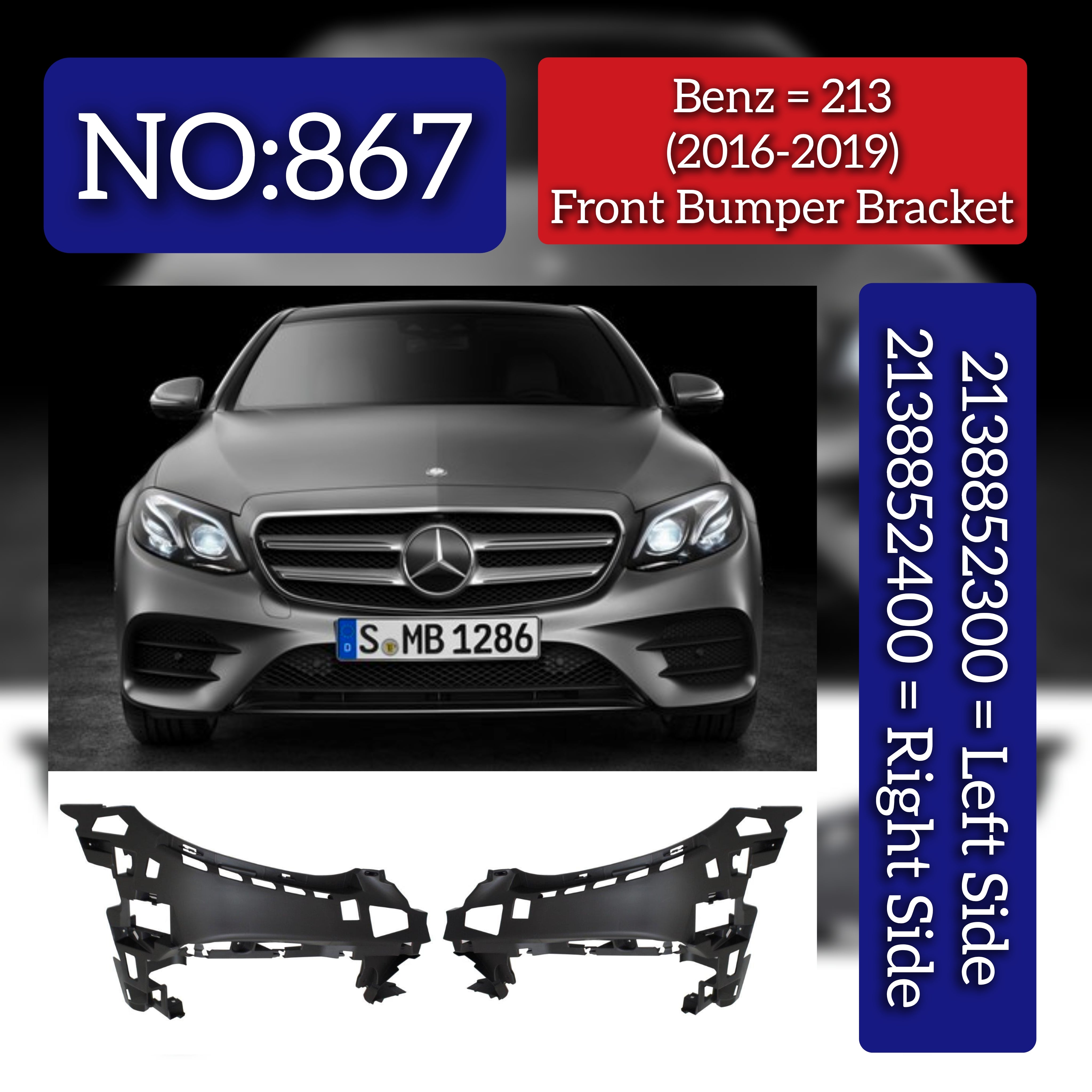 These front bumper brackets, left (2138852300) and right (2138852400), are designed specifically for the Mercedes-Benz E-CLASS W213 models from 2016 to 2019. Engineered to ensure precise fitment and durability, they provide reliable support for the front bumper assembly, maintaining structural integrity and alignment. Ideal for professional repairs or replacements, these components help preserve the vehicle’s original safety and aesthetic standards.