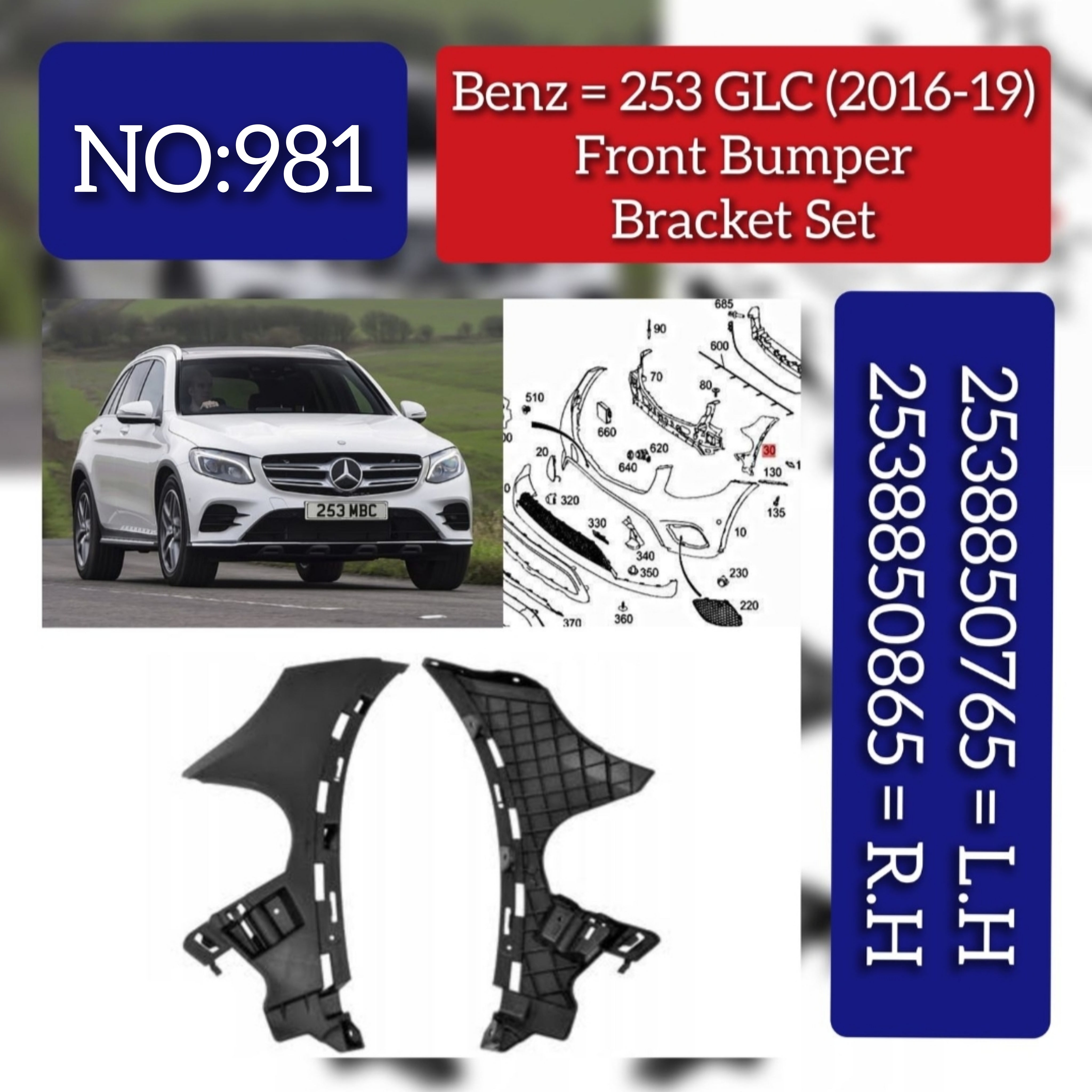 Ensure proper fit and function with these Front Bumper Brackets for your MERCEDES-BENZ GLC X253 2016-2019. Made with high-quality materials, these brackets guarantee durability and stability for your vehicle's front bumper. Keep your car looking sleek and secure with this essential pair.