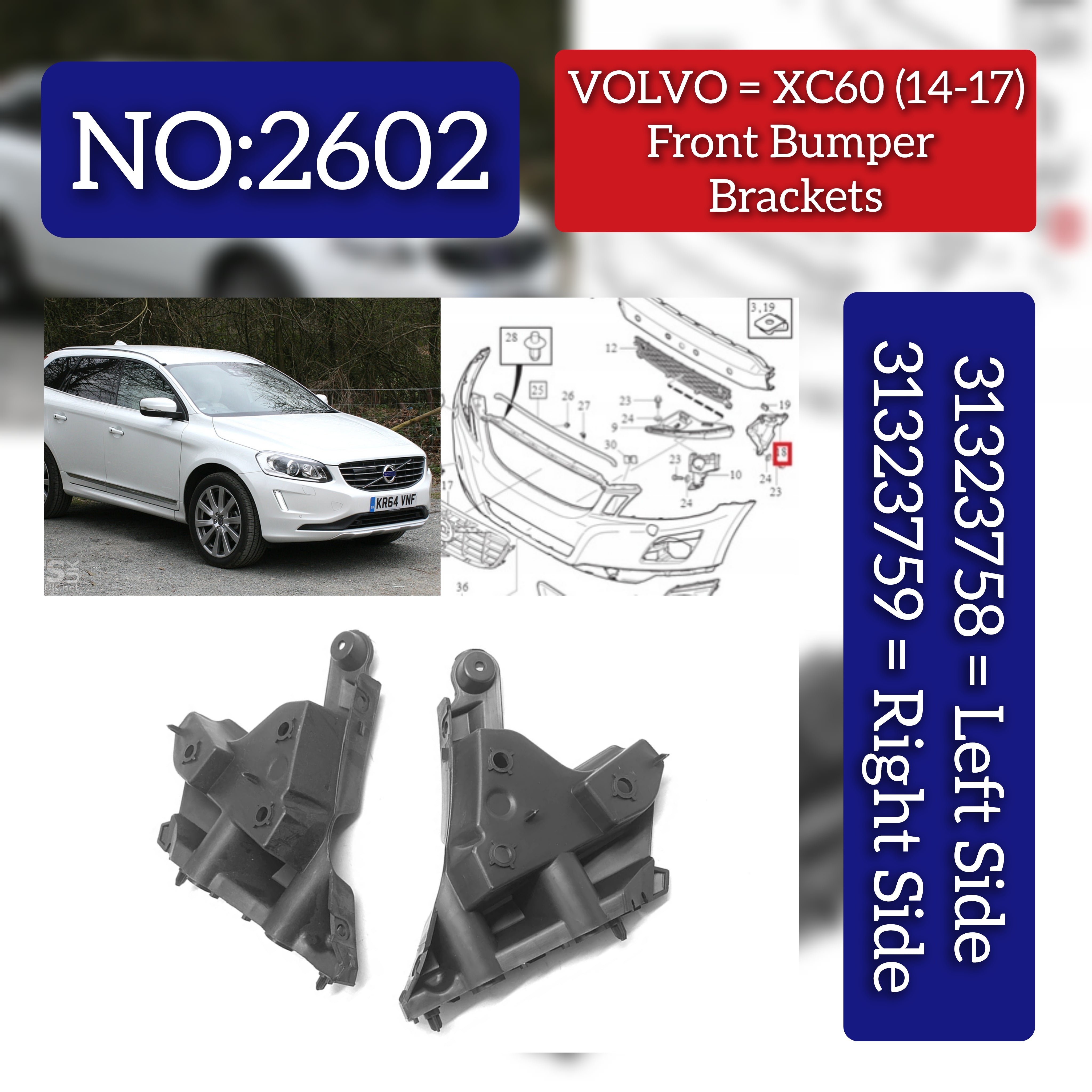 Increase the safety of your Volvo XC60 (2014-2017) with these front bumper brackets. Made with precision and durability in mind, these brackets are compatible with the left and right sides, providing optimal support and protection. Keep your vehicle looking great and functioning at its best with this reliable addition.