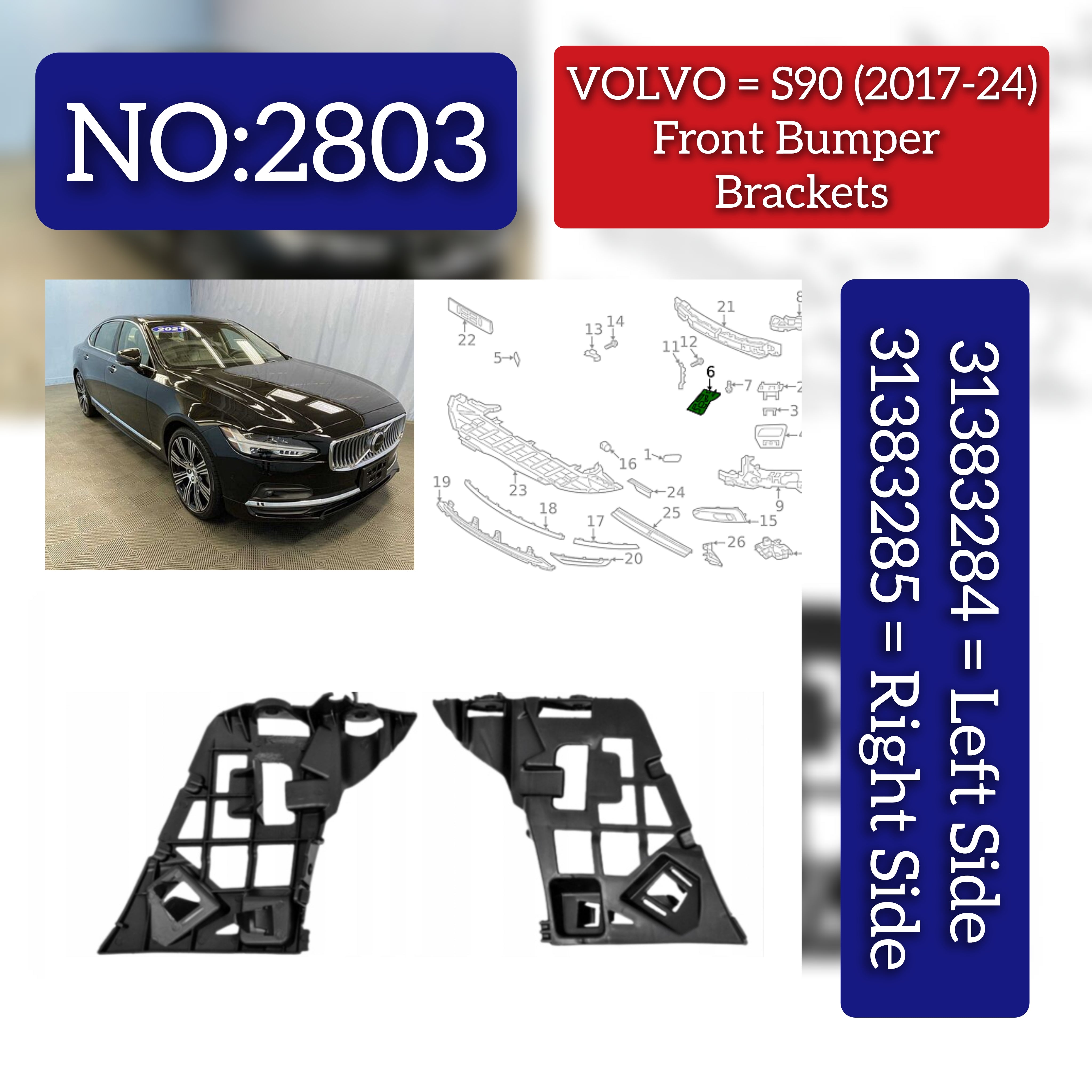 Enhance the stability and safety of your VOLVO S90 with our front bumper bracket set. Specifically designed for compatibility with models from 2017-2024, these brackets are constructed with high-quality materials for long-lasting durability. Improve the structural integrity of your car and enjoy peace of mind on the road with these reliable brackets.