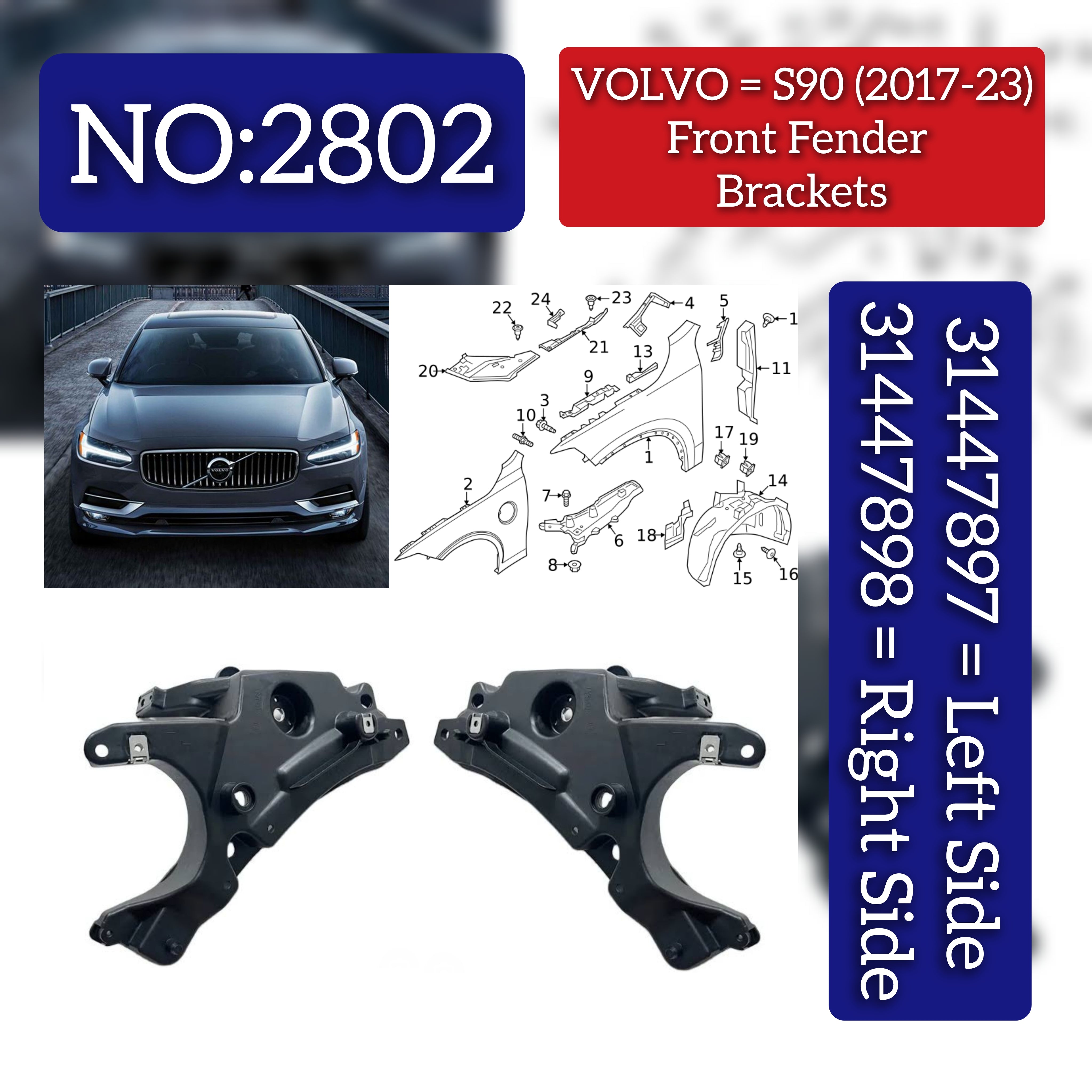 Designed specifically for the VOLVO S90 models from 2017 to 2020, these front bumper brackets (Left: 31447897, Right: 31447898) ensure precise fitment and reliable support. Manufactured to meet OEM standards, they provide structural stability to the bumper assembly, enhancing safety and maintaining the vehicle’s original alignment. Ideal for professional repairs or replacements, these brackets help restore your vehicle’s front-end integrity with confidence. Tag No. 2802.