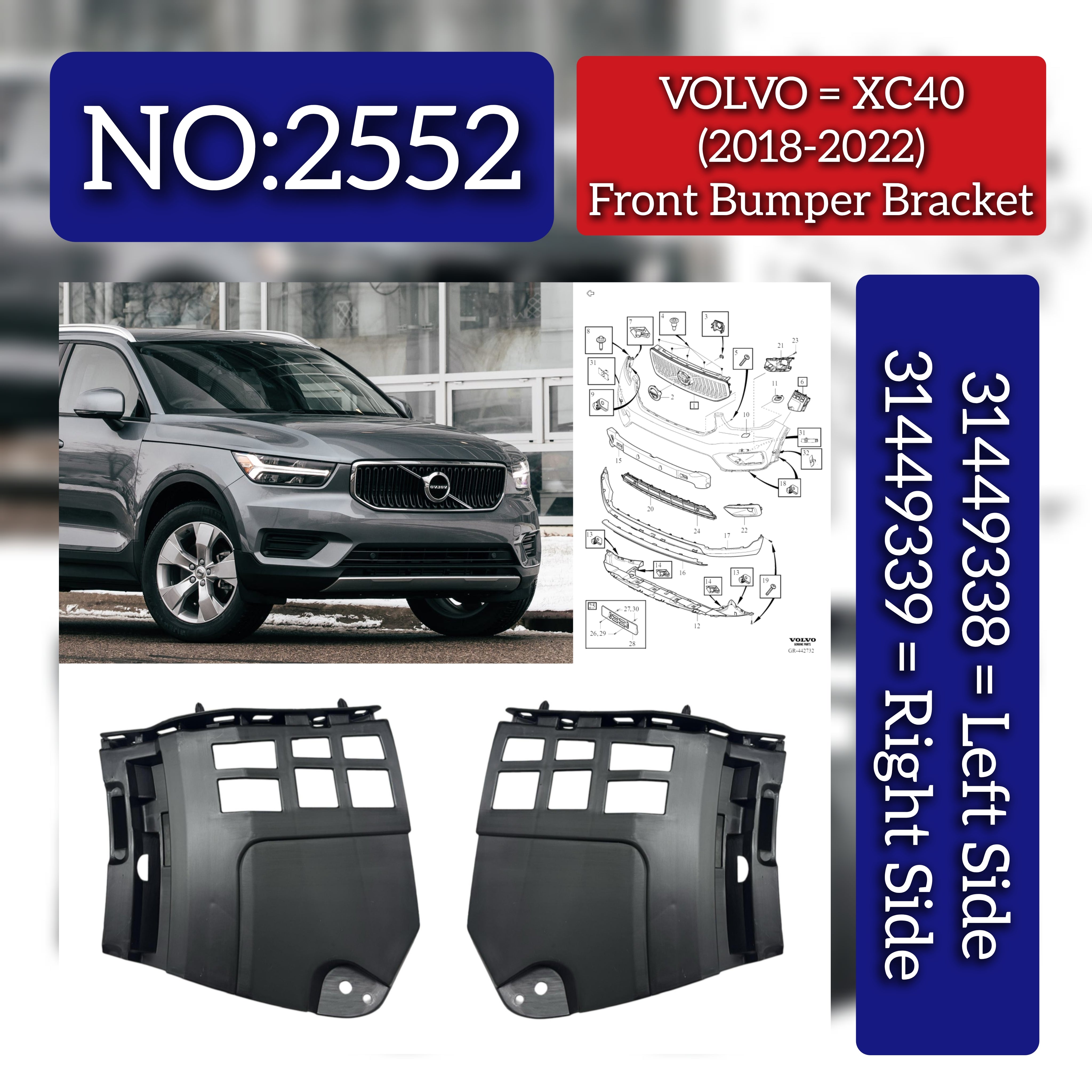 Designed specifically for the VOLVO XC40 (2018-2022), these left and right front bumper brackets (31449338 & 31449339) ensure precise fitment and reliable support. Manufactured to OEM standards, they provide structural stability to the bumper assembly, enhancing overall safety and durability. Easy to install, these brackets maintain the integrity of your vehicle's front-end, making them essential components for collision repairs or upgrades.