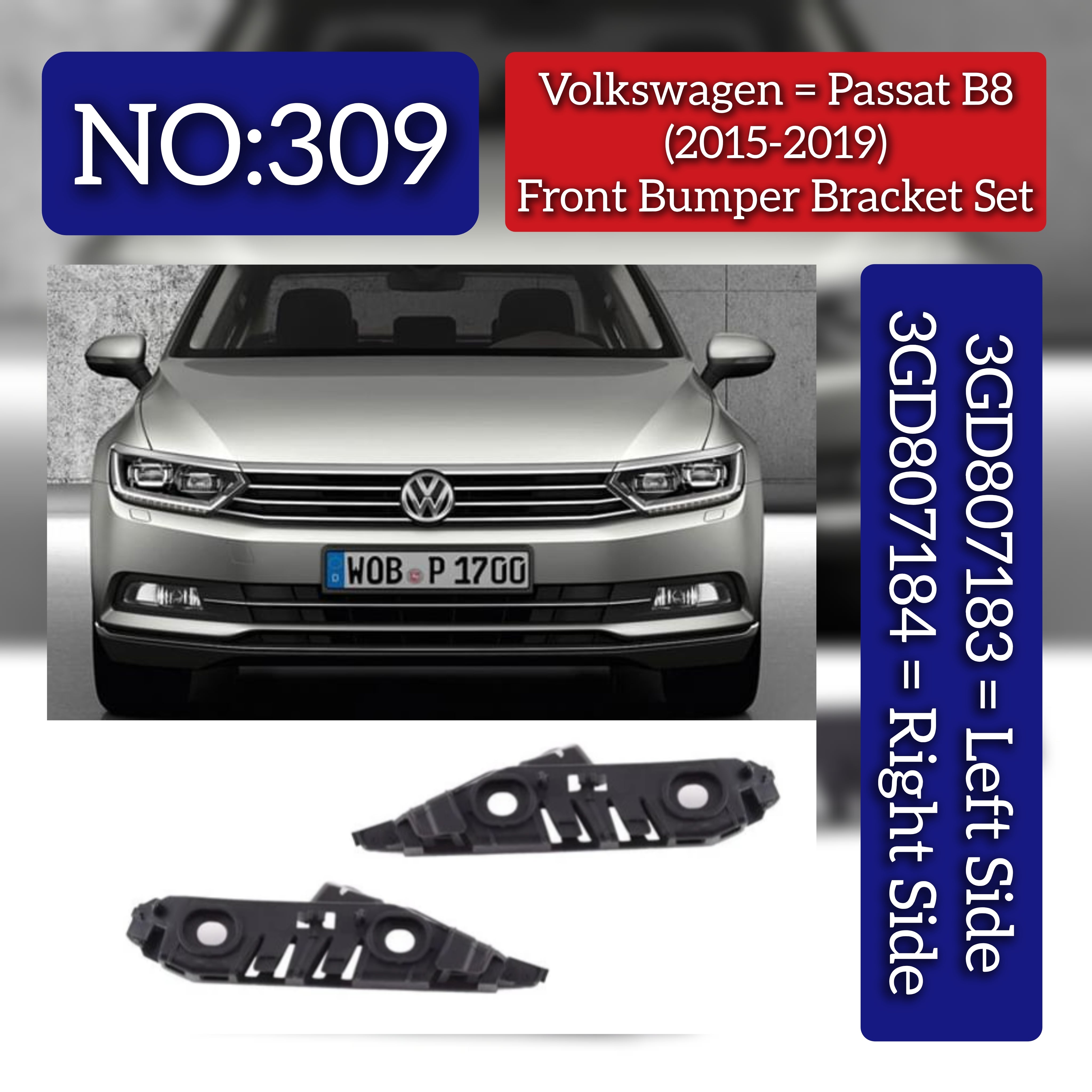 This front bumper bracket set, including left (3GD807183) and right (3GD807184) components, is designed specifically for the Volkswagen PASSAT B8 (362). Engineered to ensure precise fitment and structural integrity, these brackets provide reliable support for the front bumper assembly, maintaining vehicle safety and alignment. Ideal for professional repairs or replacements, they help restore original factory performance and appearance.