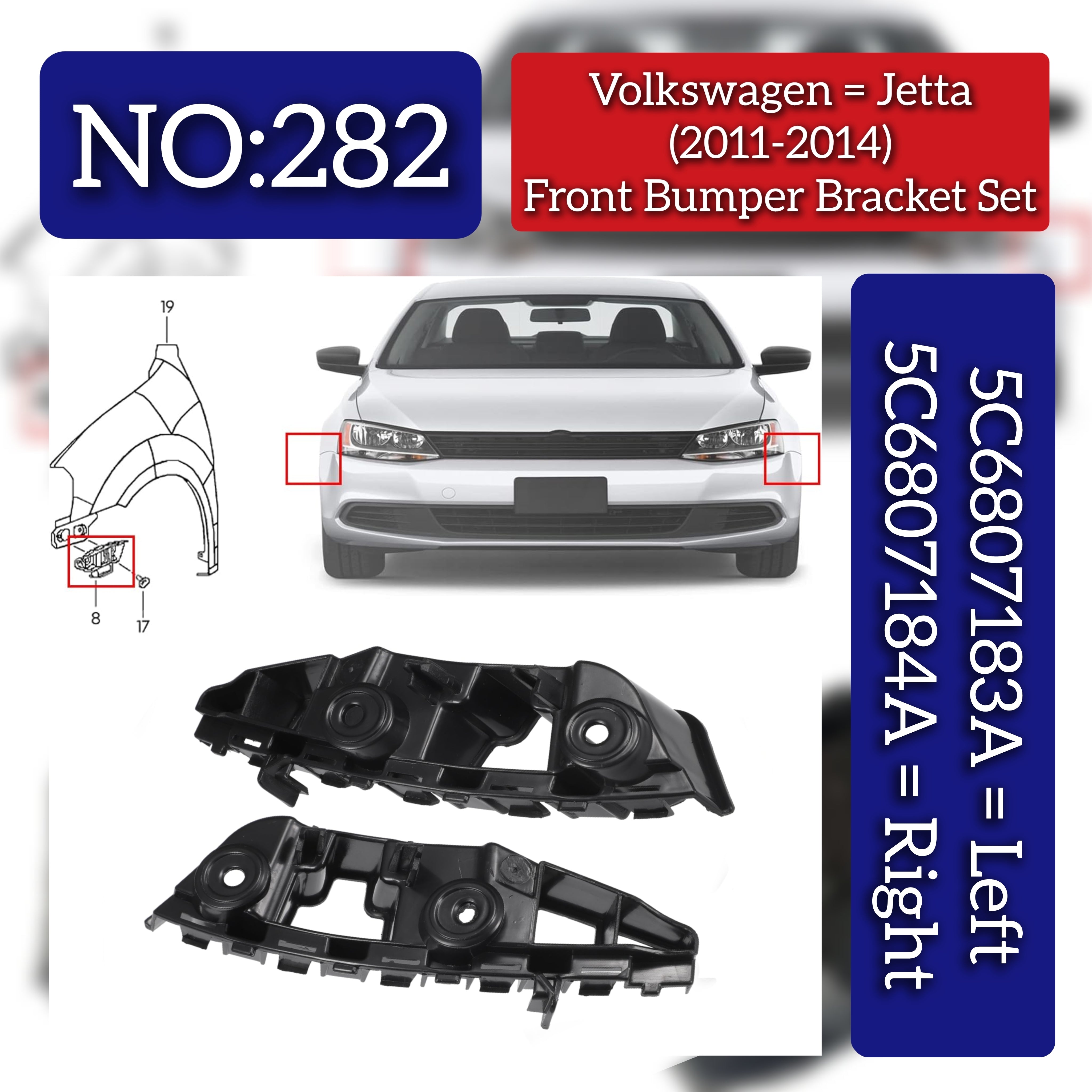 This Front Bumper Bracket set includes the Left (5C6807183A) and Right (5C6807184A) brackets, engineered for precise compatibility with the Volkswagen JETTA IV (162). These brackets provide essential structural support for the front bumper, ensuring proper alignment and secure mounting. Manufactured to meet OEM specifications, they guarantee durability and maintain the vehicle’s original fit and finish. Ideal for professional use, these components help restore the front bumper’s integrity after repairs or replacements, preserving both safety and aesthetics.