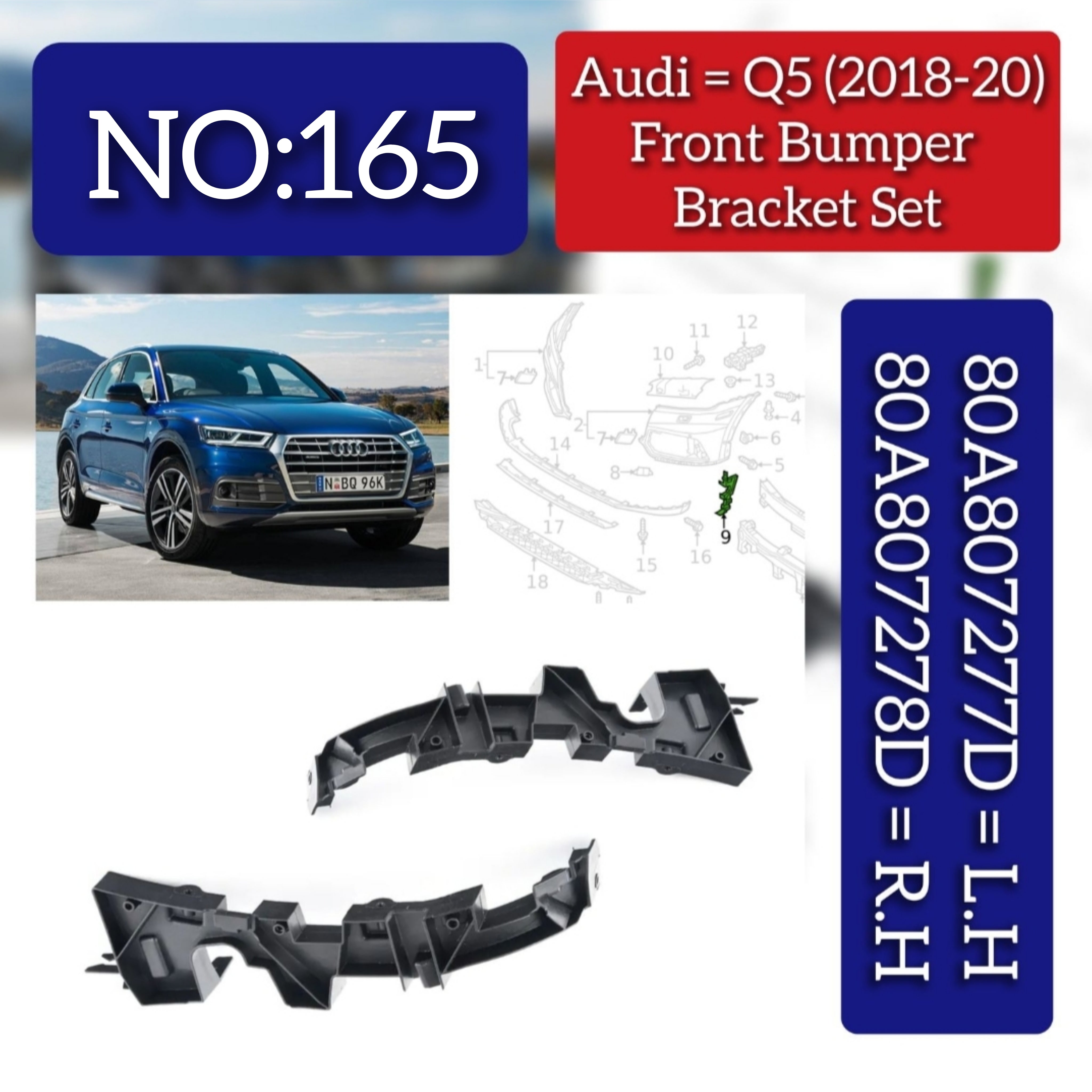 Enhance the durability and functionality of your AUDI Q5 (8RB) 2018-2020 with these compatible front bumper brackets: Left 80A807277D & Right 80A807278D. Made with premium materials, these brackets ensure a perfect fit and reliable support for your vehicle's front bumper.