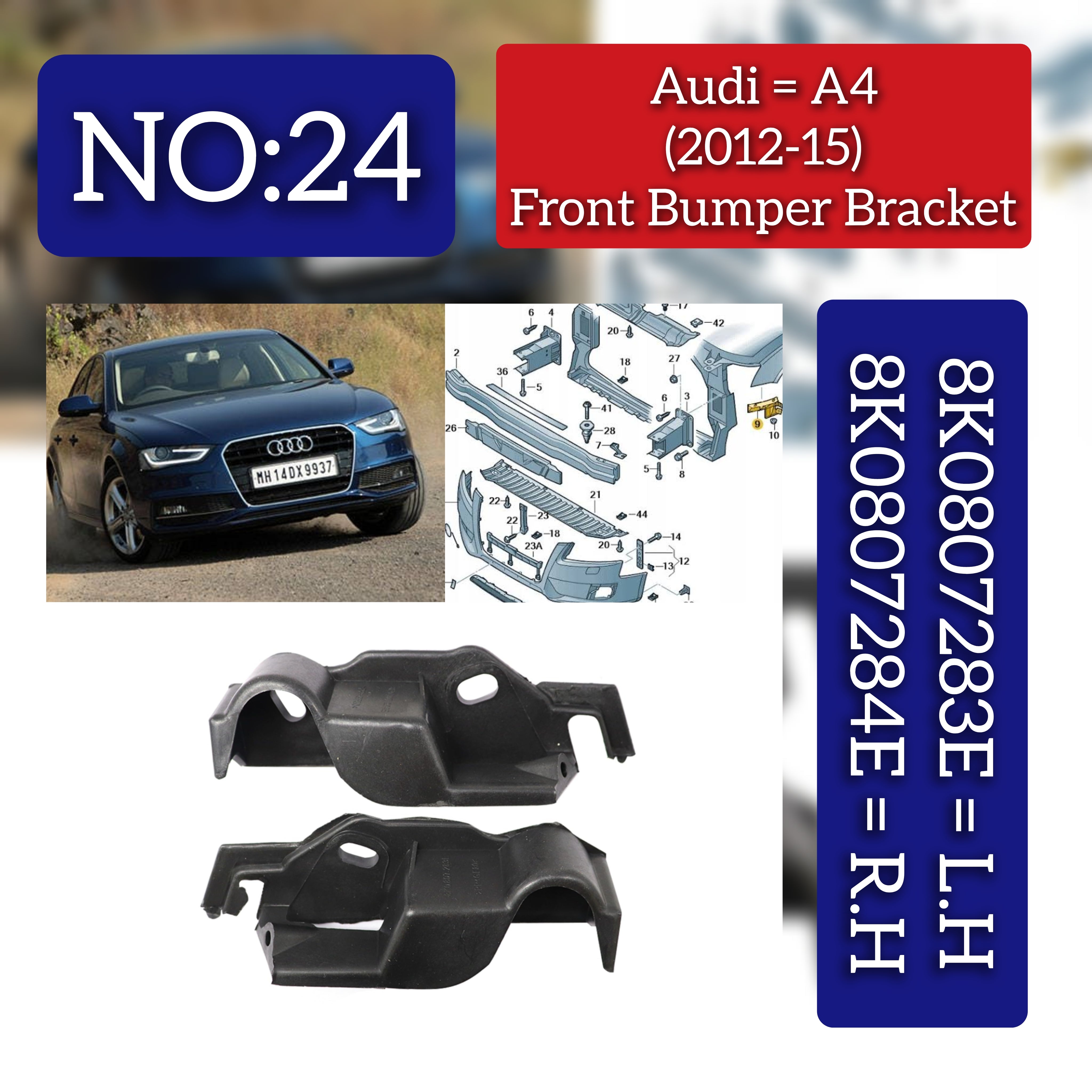 Ensure a secure and precise fit for your AUDI A4 B8 (8K2) and S4 models from 2012 to 2015 with these front bumper brackets. Designed specifically for the left (8K0807283E) and right (8K0807284E) sides, they provide reliable support and alignment for your vehicle’s front bumper, maintaining structural integrity and appearance. Crafted to OEM standards, these brackets facilitate straightforward installation and long-lasting durability, essential for maintaining your vehicle’s safety and aesthetic quality.