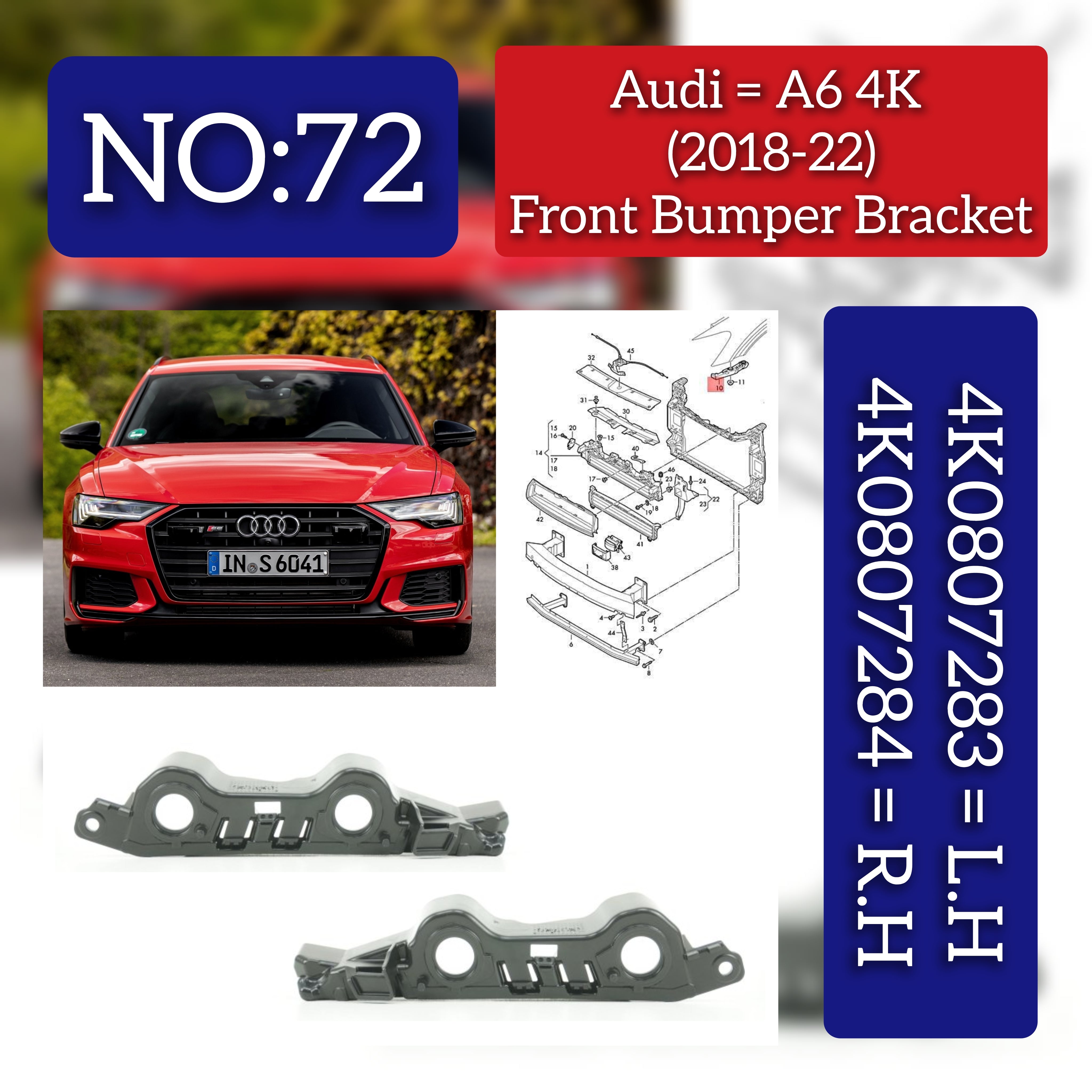 Ensure your Audi A6 4K (2018-2022) is equipped with the proper support with Front Bumper Bracket Right 4K0807284 and Left 4K0807283. Compatible with the Audi A6 4K, these brackets provide sturdy and secure attachment for the front bumper, ensuring long-lasting protection and stability while on the road.