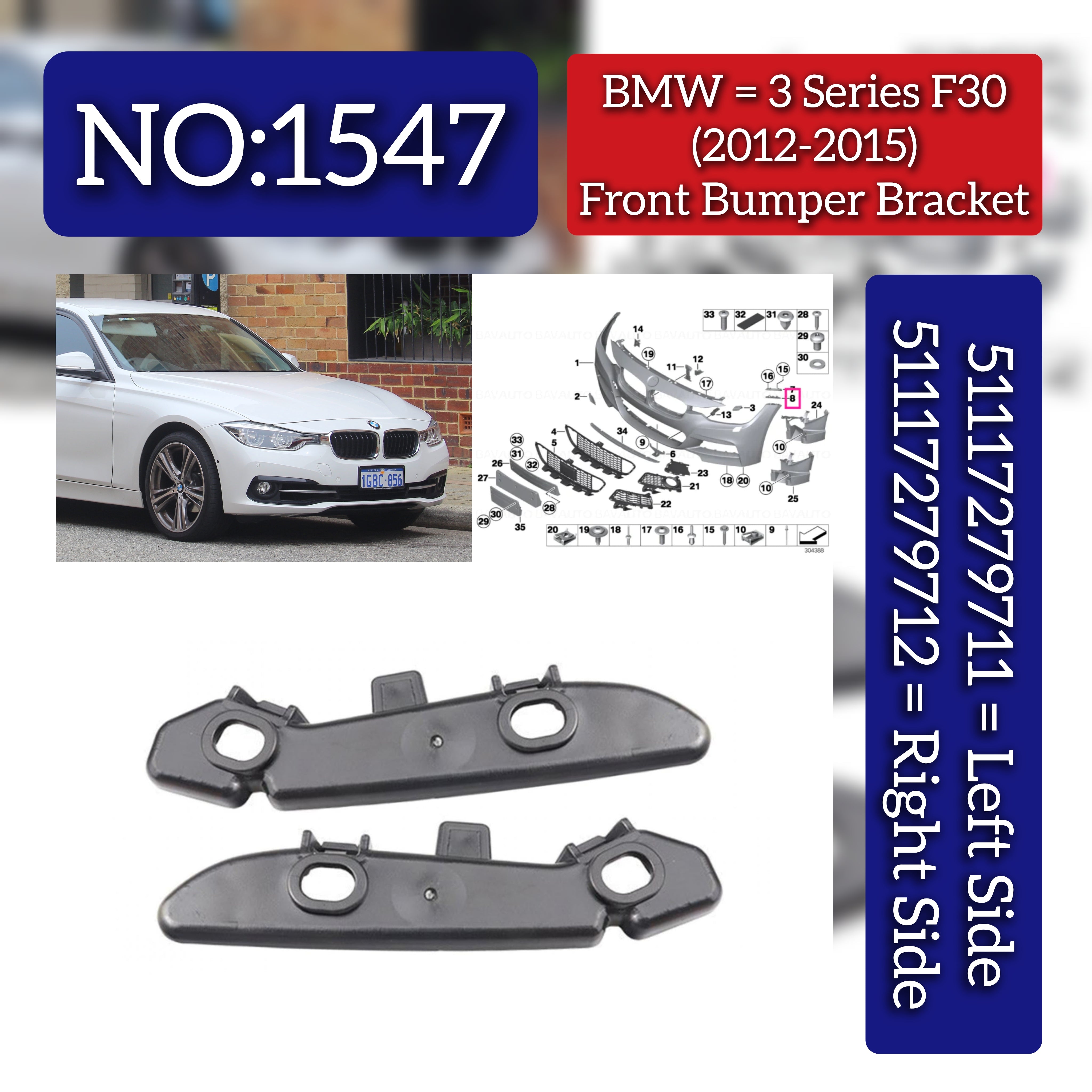 Designed specifically for BMW 3 Series F30 models (2012–2015), this set includes both right (51117279712) and left (51117279711) front bumper brackets. Engineered to exact OEM specifications, these brackets provide robust support and secure attachment for the front bumper, ensuring proper alignment and durability. Ideal for professional installation, they help maintain structural integrity and protect your vehicle’s front end from impact damage. Tag No.1547 for easy identification and compatibility verification.