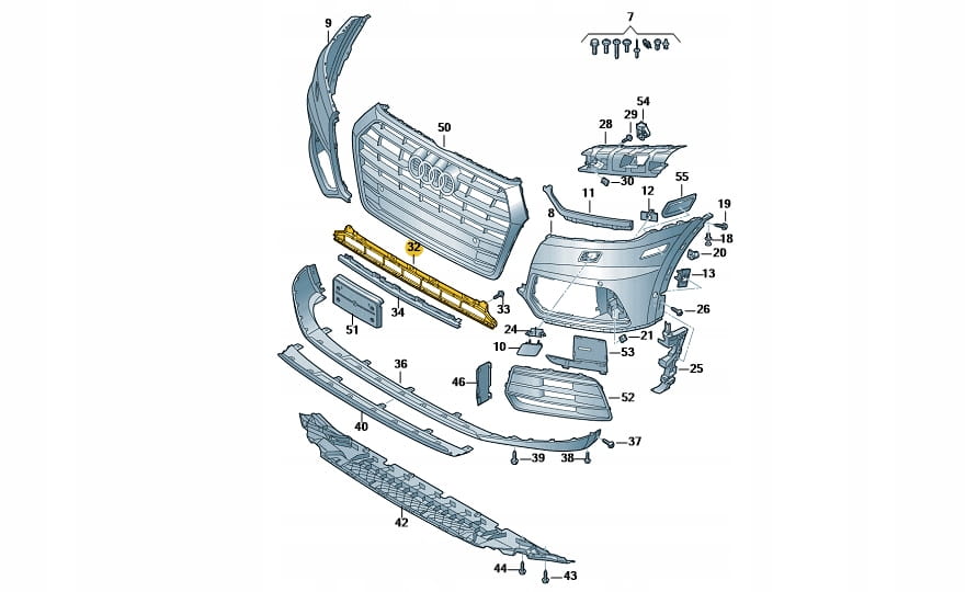 Upgrade your 2013 AUDI Q5 S-Line with the Front Bumper Central Grille 8R0807647B. This compatible grille not only enhances the appearance of your vehicle, but also provides added protection to the front bumper. Crafted with precision and designed to fit seamlessly, it's the perfect addition for any AUDI Q5 S-Line.