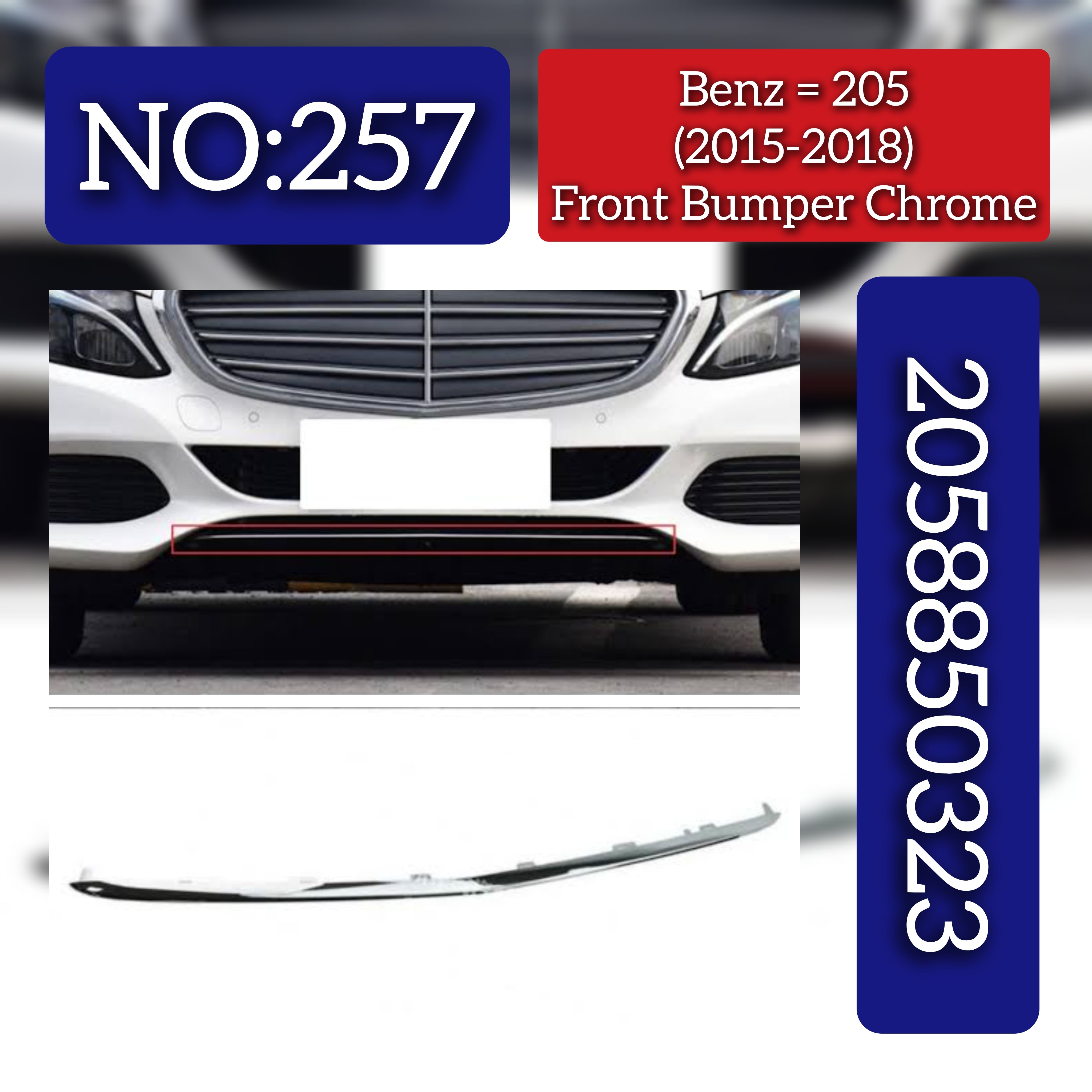 Enhance your Mercedes Benz C CLASS W205 with this precision-engineered Front Bumper Chrome (Part No. 2058850323, Tag No. 257). Designed for perfect compatibility, it offers a sleek, durable finish that maintains your vehicle’s premium appearance while providing reliable protection. Crafted to meet OEM standards, this bumper ensures seamless fitment and long-lasting performance, making it an essential upgrade for maintaining both style and safety.
