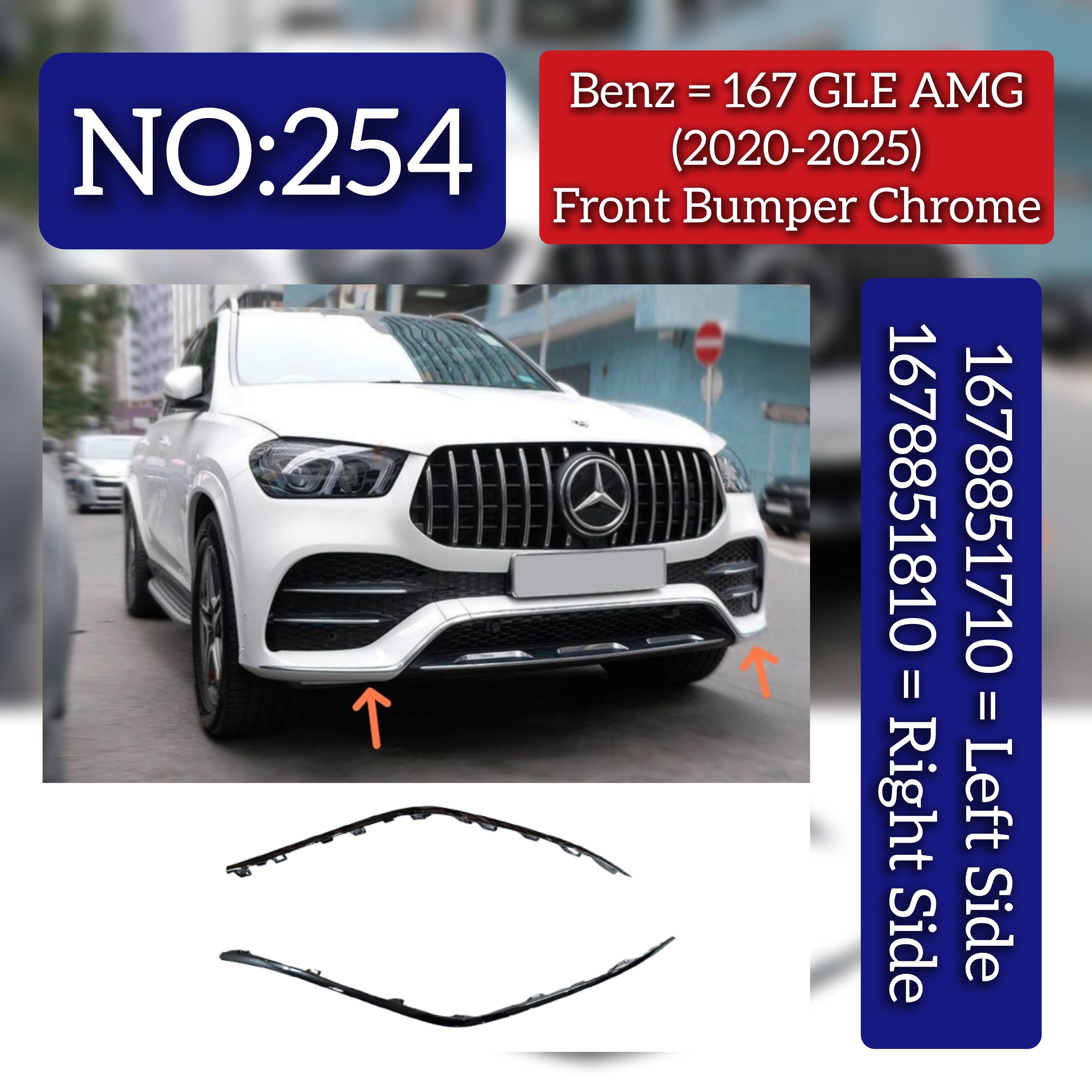 Enhance your Mercedes Benz GLE W167 with these precision-engineered front bumper chrome pieces, designed for both left (1678851710) and right (1678851810) sides. Crafted to fit seamlessly, they restore the vehicle’s original elegance while providing durable protection against everyday wear. Ideal for maintaining the premium look and structural integrity of your front bumper. Tag No.254 ensures exact compatibility and easy identification for professional installation.