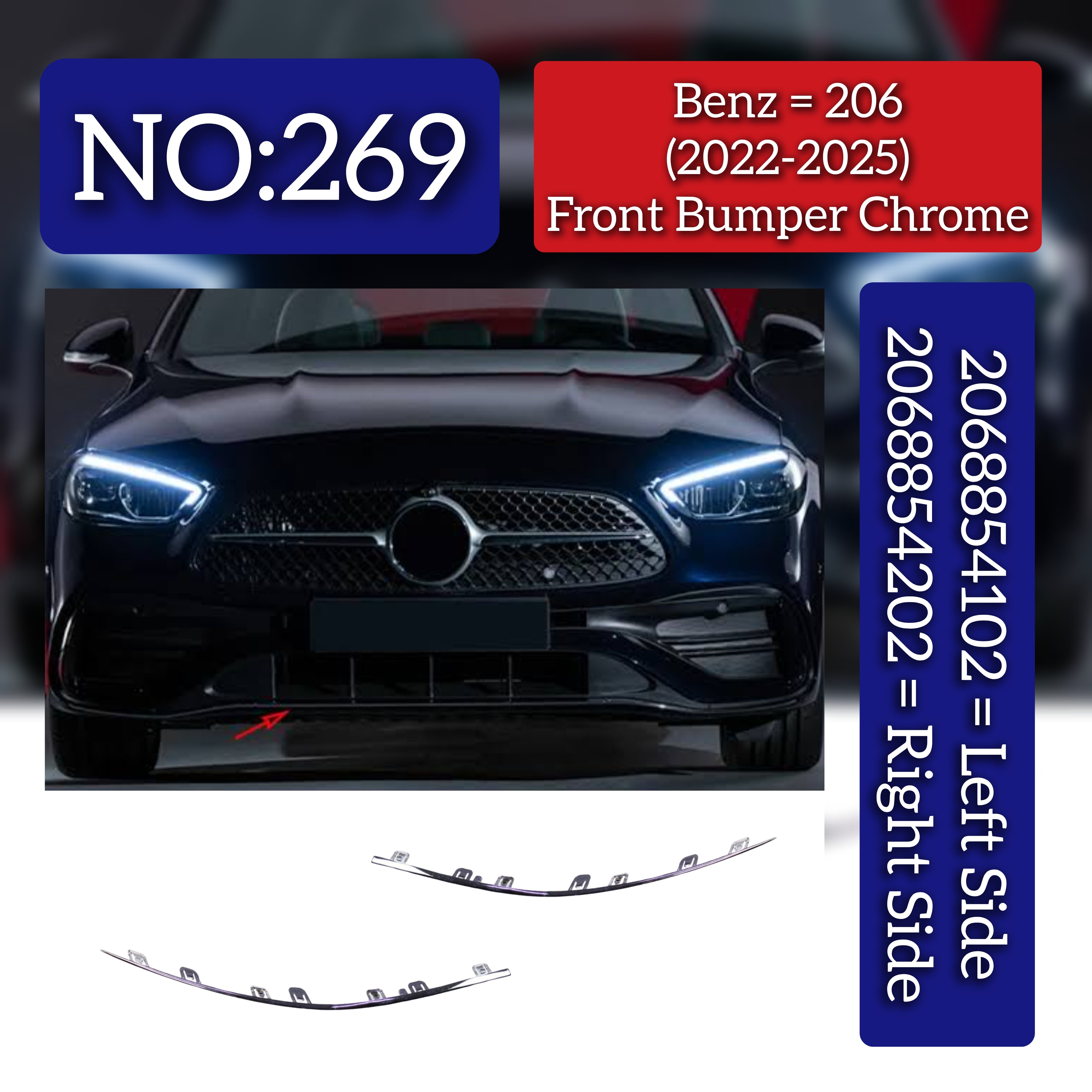 Enhance your Mercedes-Benz C-CLASS W206 (2022-2025) with these precision-engineered front bumper chrome pieces, left (2068854102) and right (2068854202). Designed for perfect fit and durability, they restore the vehicle’s sleek appearance while providing robust protection. Crafted to meet OEM standards, these components ensure seamless integration and maintain your car’s premium aesthetic. Ideal for professional repairs or upgrades, they deliver both style and function with lasting quality.