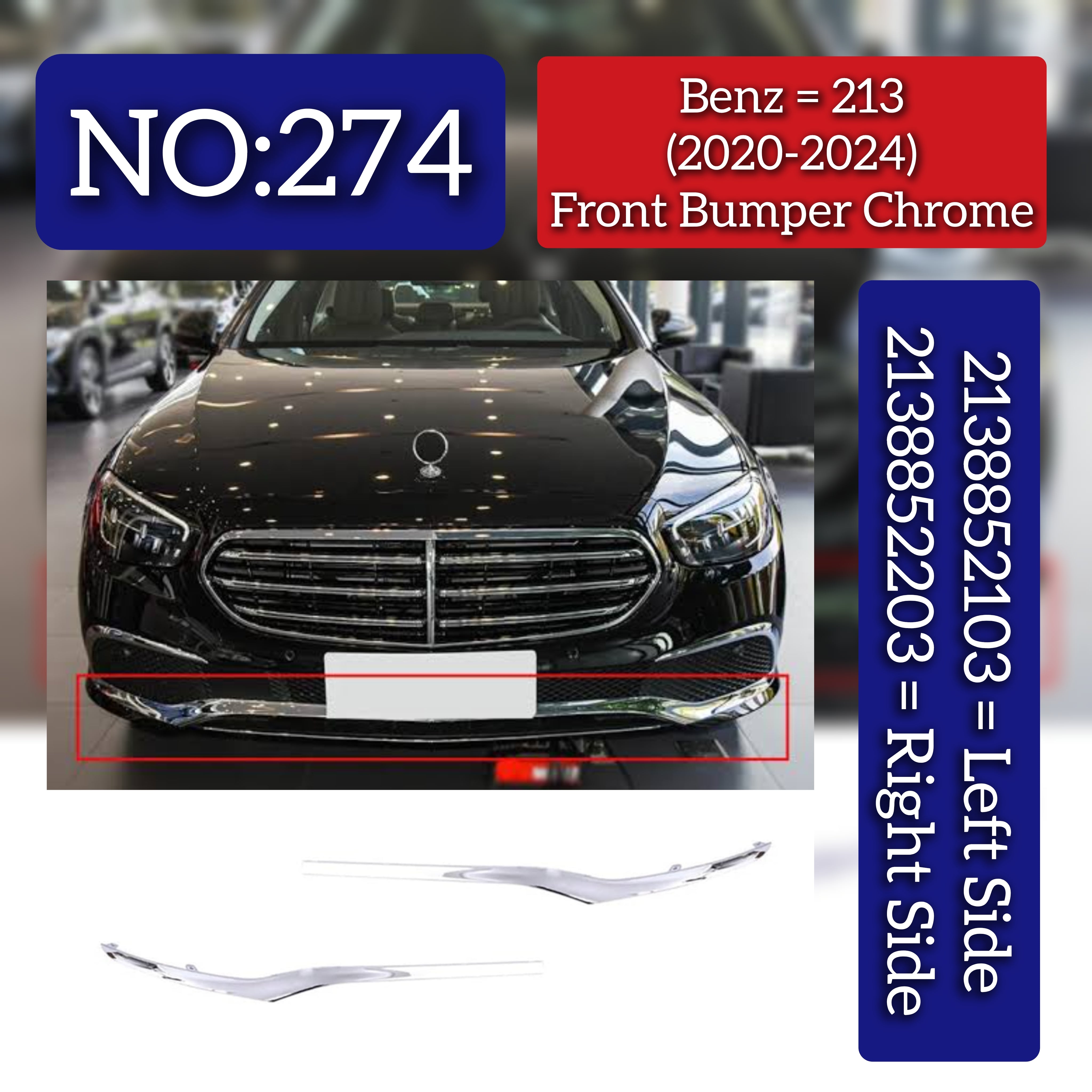 Enhance your Mercedes-Benz E-CLASS W213 (2020-2024) with these precision-engineered front bumper chrome pieces, left (2138852103) and right (2138852203). Designed for perfect fit and durability, they restore the vehicle’s original aesthetic while providing robust protection. Crafted to meet OEM standards, these components ensure seamless integration and long-lasting performance, maintaining the premium look and integrity of your vehicle’s front end. Ideal for professional repairs or upgrades, they deliver both style and function with expert precision.