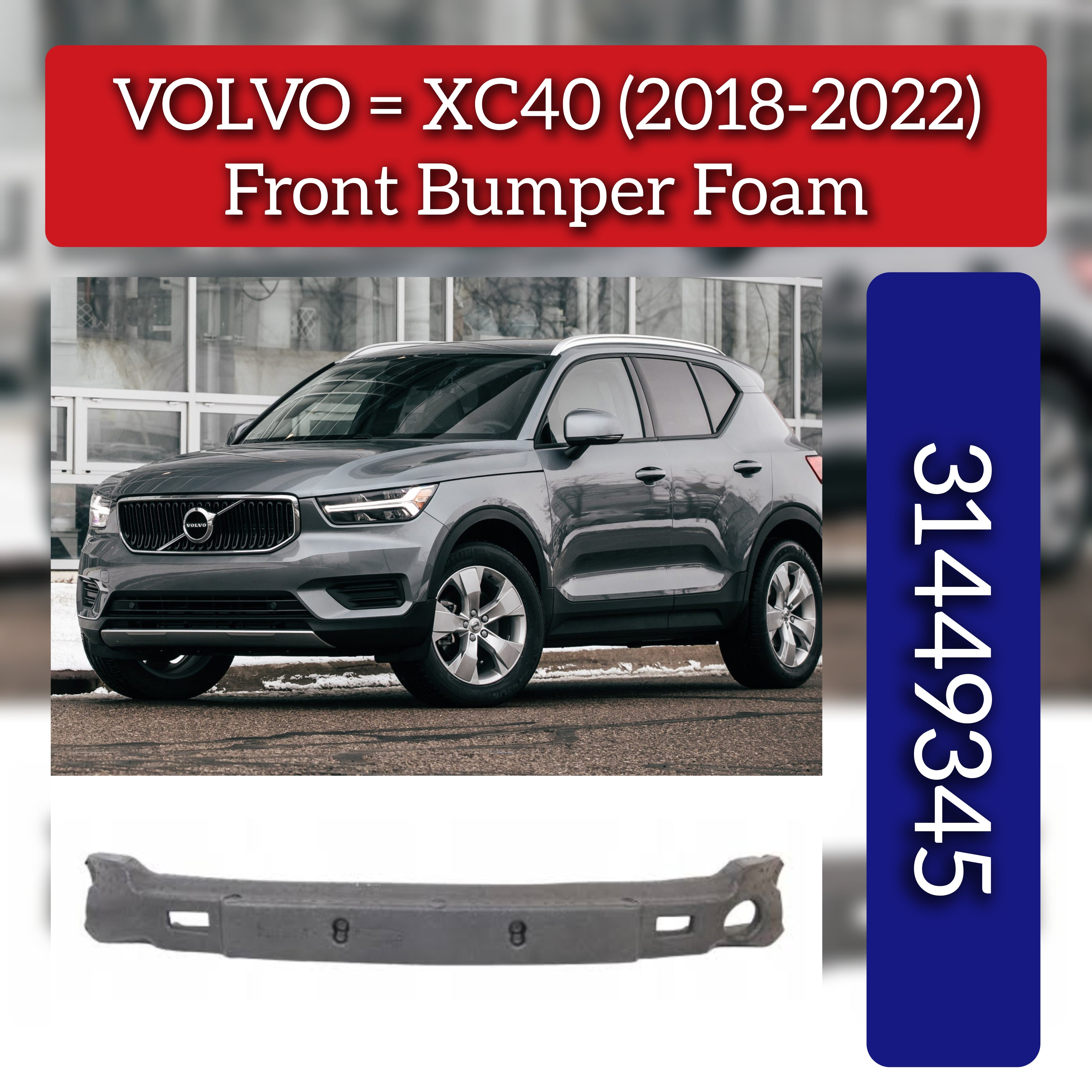 The Front Bumper Foam 31449345 is designed specifically for Volvo XC40 models from 2018 to 2022. This component enhances impact absorption during collisions, helping to minimize damage to the vehicle’s frame and improve overall safety. Its precise fit ensures seamless integration with the OEM bumper, maintaining the structural integrity and original design of your Volvo XC40. Ideal for professional repairs or quality upgrades, this bumper foam contributes to preserving your vehicle’s performance and safety standards.