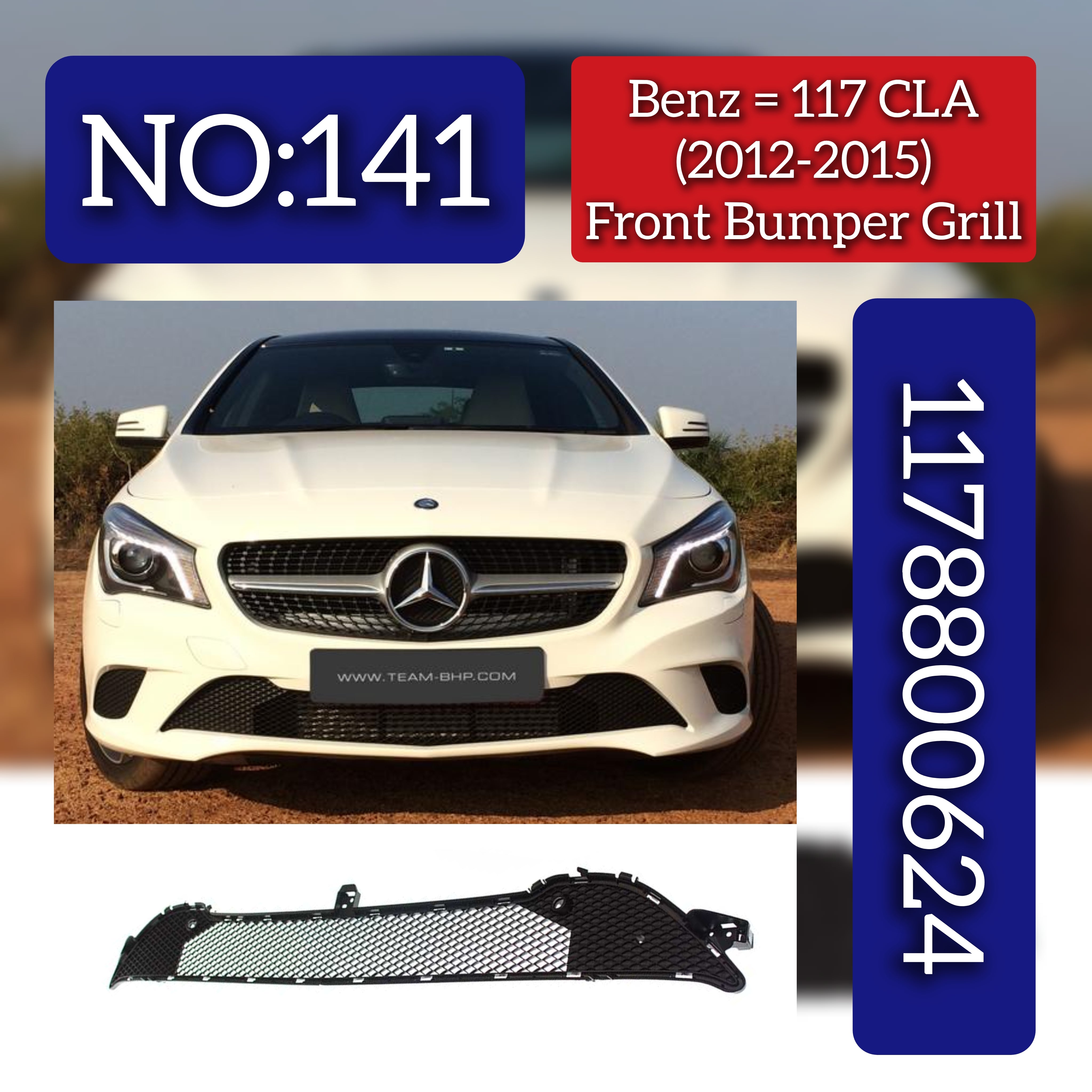 Enhance your Mercedes-Benz CLA-CLASS W117 (2012-2015) with this precision-engineered Front Bumper Grill 1178800624. Designed for perfect fit and durability, it ensures optimal airflow to your engine while maintaining the vehicle’s sleek aesthetic. Crafted to meet OEM standards, this grill offers reliable performance and a seamless integration with your car’s front bumper, making it an essential replacement part for maintaining both style and function. Tag No.141.