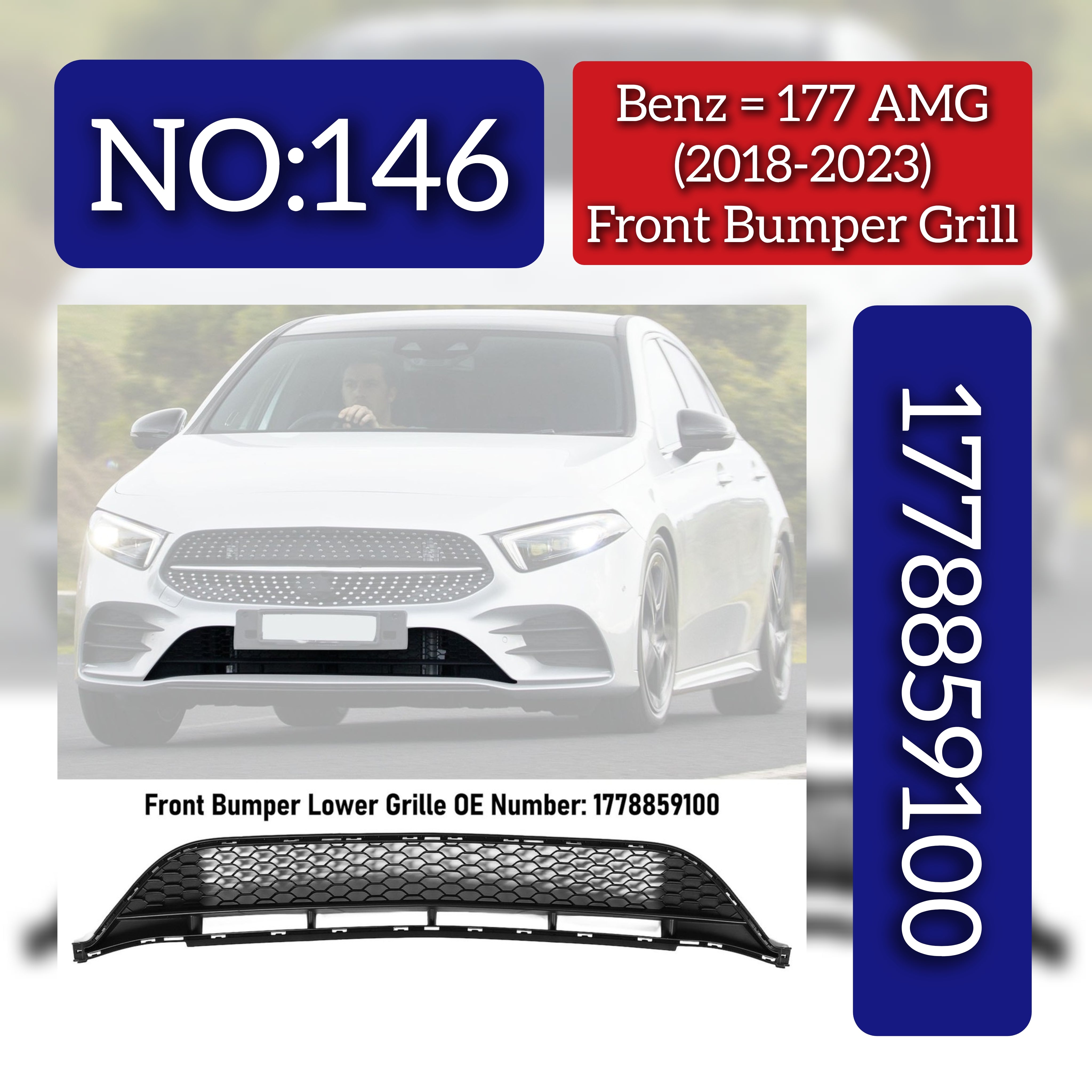 Enhance your Mercedes-Benz A-CLASS W177 (2018-2023) with this precision-engineered Front Bumper Grill 1778859100. Designed for perfect fit and durability, it ensures optimal airflow while maintaining the vehicle’s sleek aesthetic. Crafted to meet OEM standards, this grill offers reliable performance and seamless integration, making it an essential replacement part for maintaining your car’s original look and function. Tag No.146.