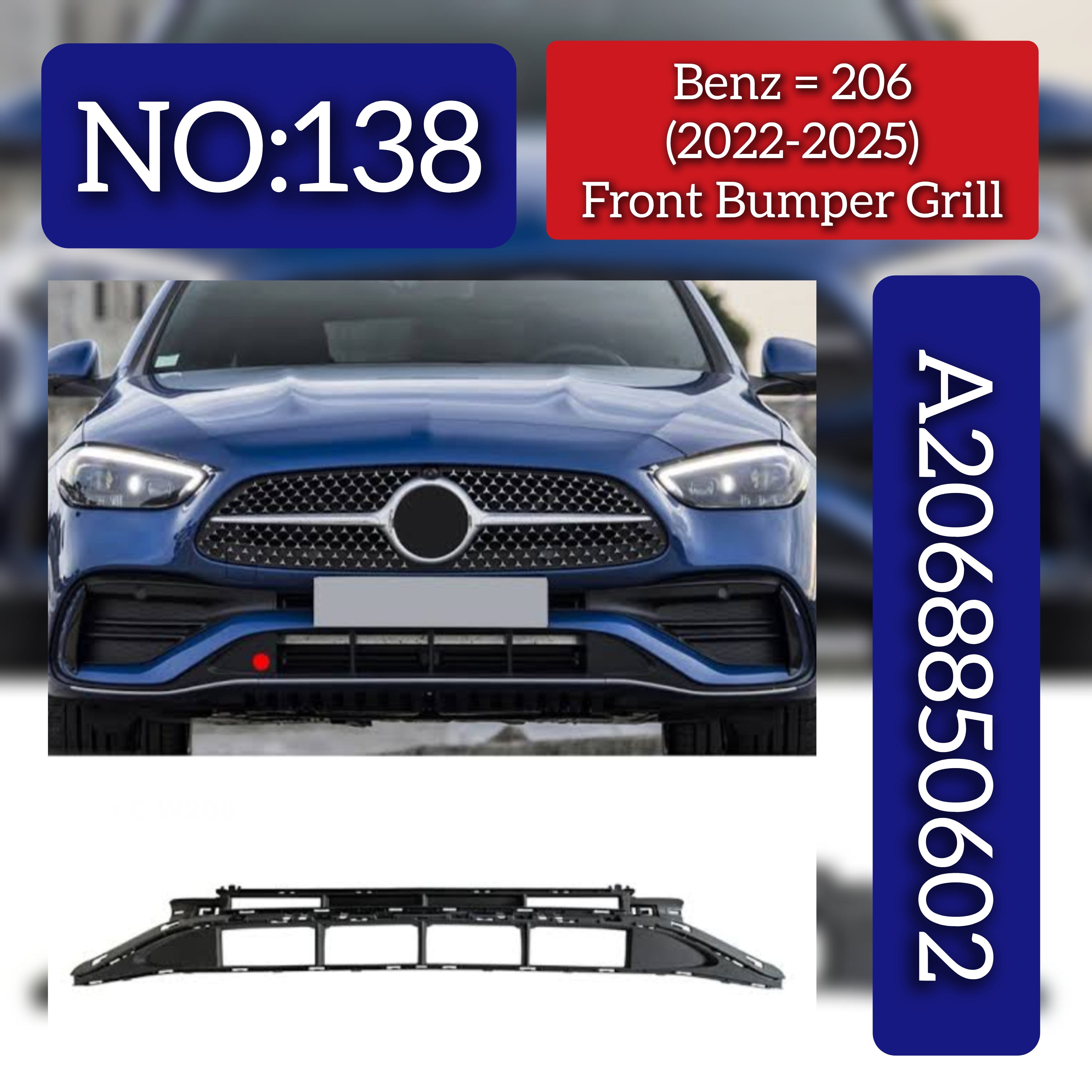 This Front Bumper Grill 2068850602 is specifically designed for the Mercedes-Benz C-CLASS W206 model years 2022 to 2025. Engineered to match OEM specifications, it ensures a precise fit and maintains the vehicle’s aerodynamic efficiency. Constructed from durable materials, this grill provides reliable protection for the front bumper while enhancing the car’s sleek, modern appearance. Ideal for professional repairs or upgrades, it upholds the high standards expected for Mercedes-Benz vehicles.