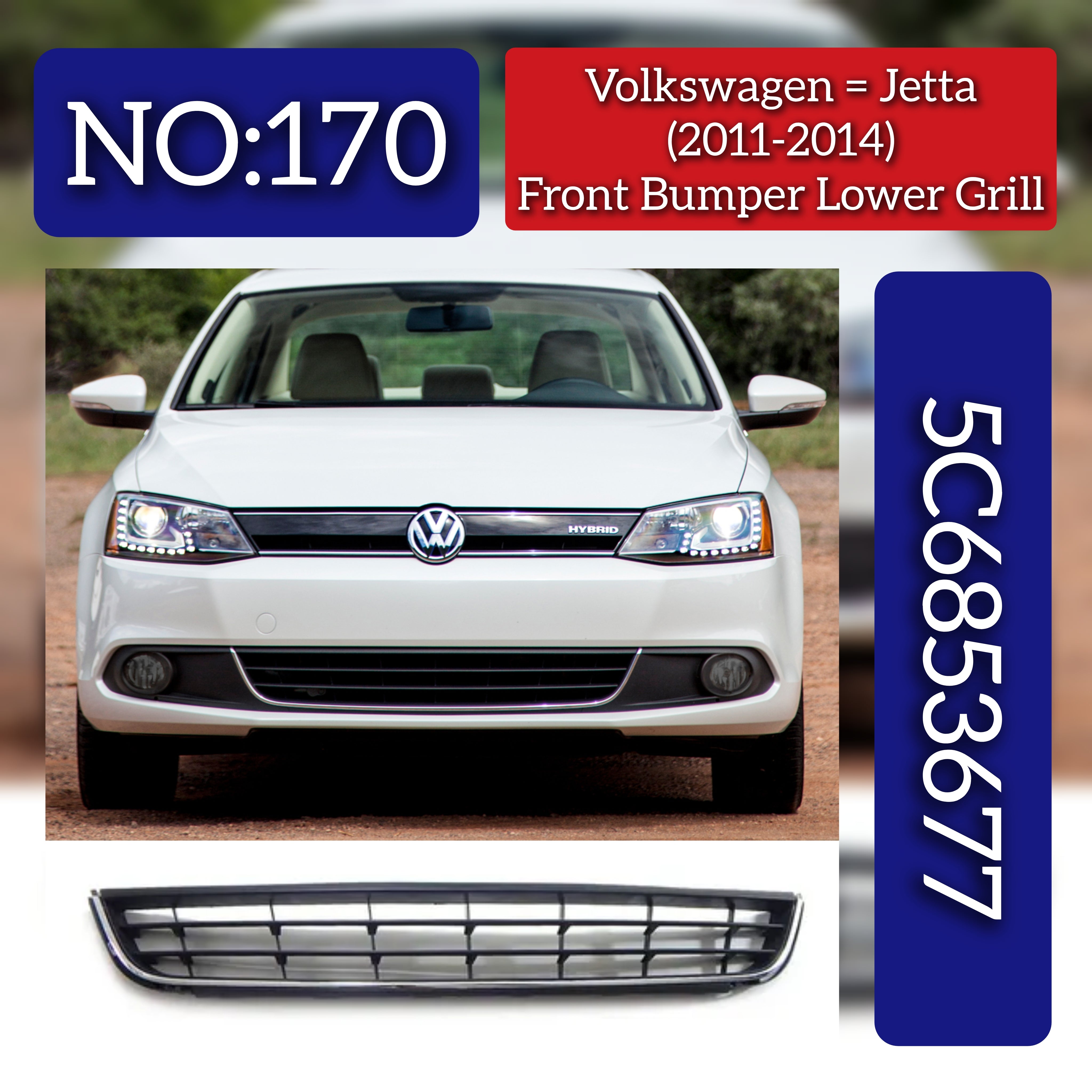 Enhance your Volkswagen Jetta's front appearance with this precision-engineered Front Bumper Grill 5C68536770. Designed for perfect compatibility, it ensures seamless fitment and maintains the vehicle’s original aesthetic. Crafted to meet OEM standards, this grill offers durability and reliable protection for your car’s front end while allowing optimal airflow to the engine. Ideal for professional replacements or upgrades, it preserves your Jetta’s performance and style with expert quality.
