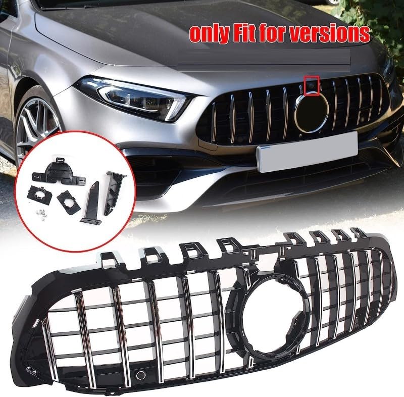 Details: Description Car Craft Front Bumper Grill Compatible With Mercedes Benz A Class W177 A250 A200 A45 2019-2023 Front Bumper Grill Fitment: Car Craft Front Bumper Grill Compatible With Mercedes Benz A Class W177 A250 A200 A45 2019-2023 Front Bumper Grill (Please make sure the item fits for your vehicle before your purchase) Specification: Part Type: GT Panamericana Grille Position: Main Upper Installation: Derect Replacement Color: Gloss Black,Silver Features: Gives your vehicle a new style and appearance Accentuates your vehicles overall look A great upgrade for your vehicle Provides better airflow to the radiator to help the cooling process better Package Included: 1pcs Car Front Grille (Without Emblem) Installation: 1.Please use a qualified garage to Install the item 2.Easy to Install, we recommend screws and 3M tape 3.Our products come with fitting kits where applicable but we always recommend professional fitting, so please check our fitting partners page to find a local specialist.