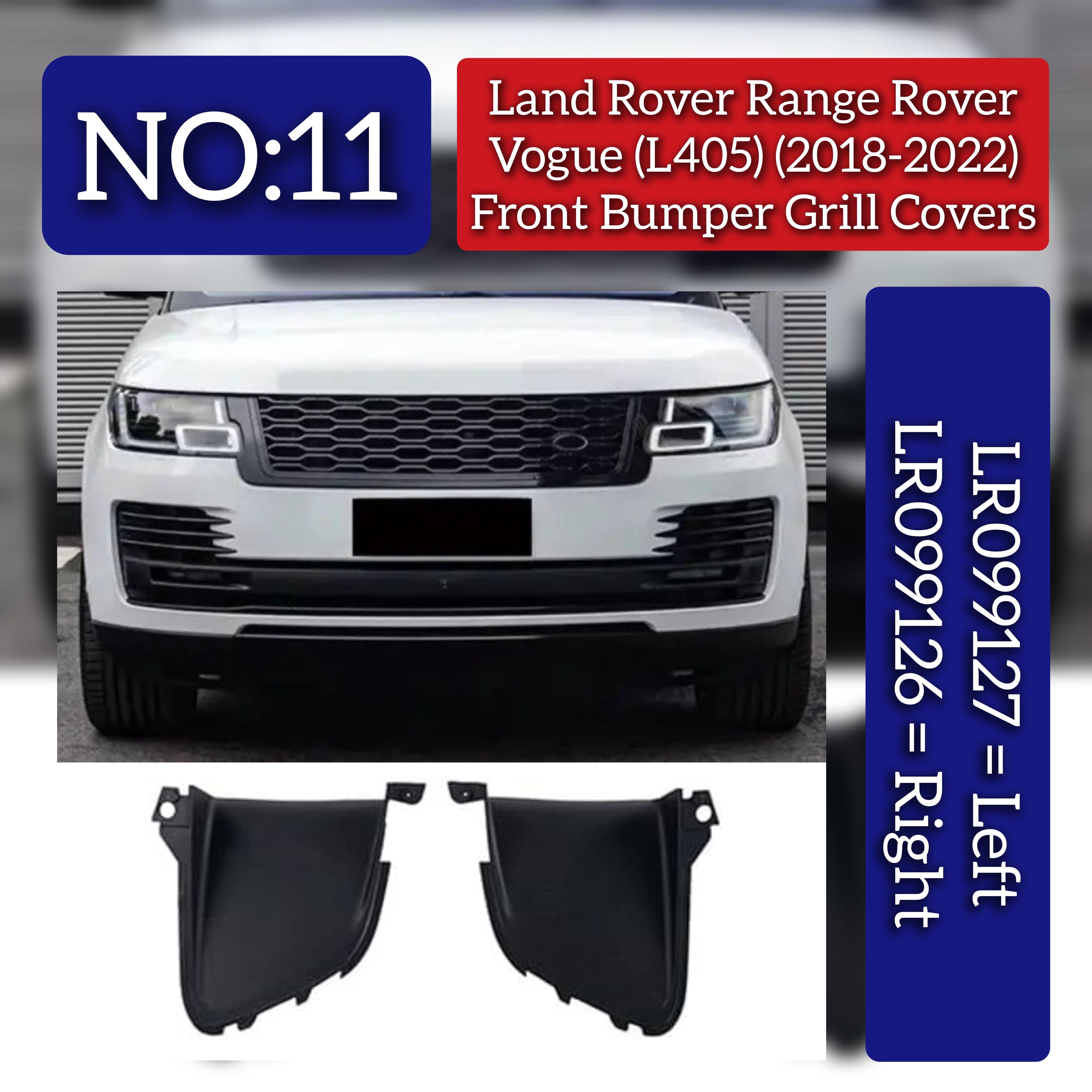 Enhance and protect your Land Rover Range Rover Vogue L405 (2018-2022) with these premium Front Bumper Grill Covers, right (LR099126) and left (LR099127). Designed for precise fit and durability, these covers safeguard your vehicle’s front grille from debris and wear without compromising airflow. Manufactured to meet original specifications, they ensure seamless integration and maintain the sophisticated look of your Range Rover. Ideal for replacing damaged parts or upgrading the front fascia, these grill covers combine functionality with authentic style.
