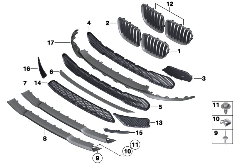 Enhance the look of your BMW X1 (E84) with our Front Bumper Grille set. Made with durable materials, these grilles are designed to fit perfectly and add a touch of style to your vehicle. Improve air flow and protect your bumper with these compatible grilles.