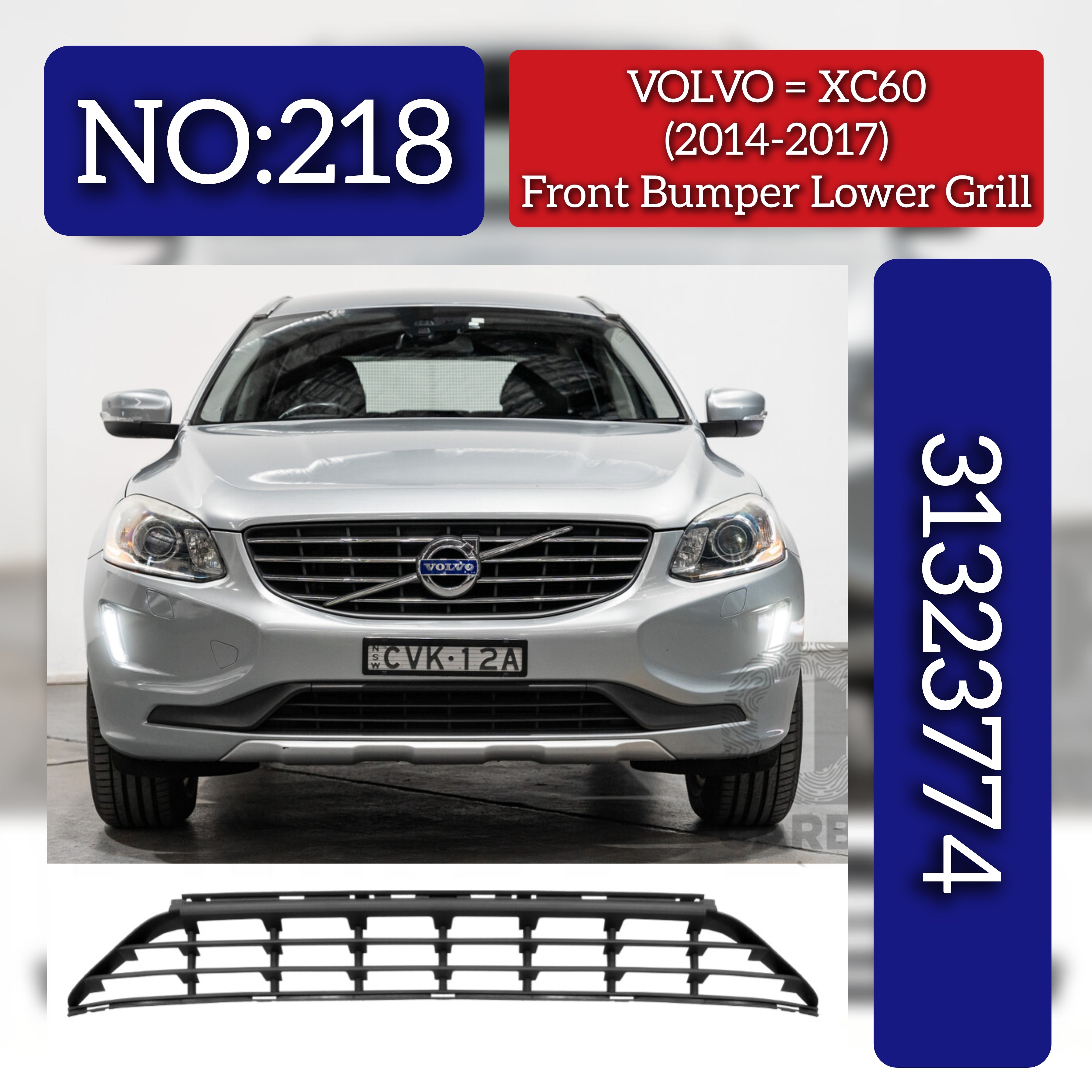 Enhance your VOLVO XC60 (2014-2017) with this Front Bumper Lower Grill, part number 31323774. Designed for precise fit and durability, it restores the vehicle's front-end appearance while allowing optimal airflow to the engine bay. Manufactured to match OEM specifications, this grill ensures reliable protection against debris and weather elements, maintaining both functionality and style. Ideal for seamless replacement or upgrade, it supports long-term vehicle performance and aesthetic integrity.
