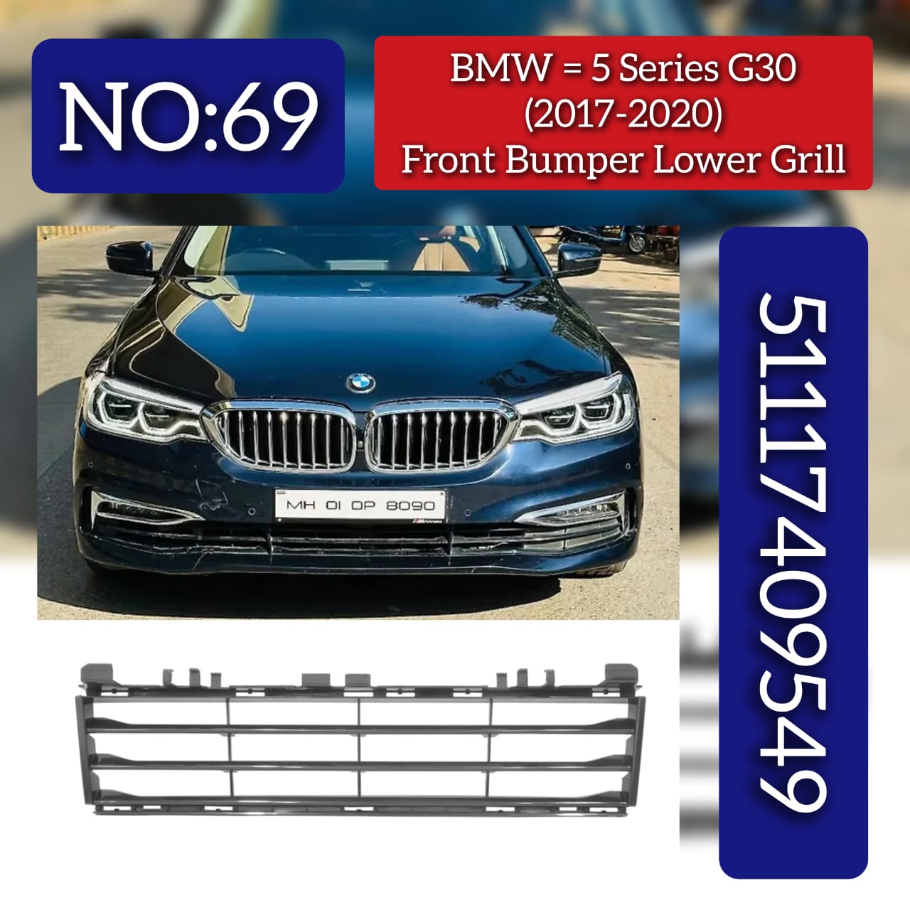 Precision-engineered front bumper lower grill (part #51117409549) specifically designed for BMW 5 Series G30 models. This OEM-compatible component ensures perfect fitment and seamless integration with your vehicle's front fascia, maintaining both the aesthetic appeal and aerodynamic functionality of your BMW.