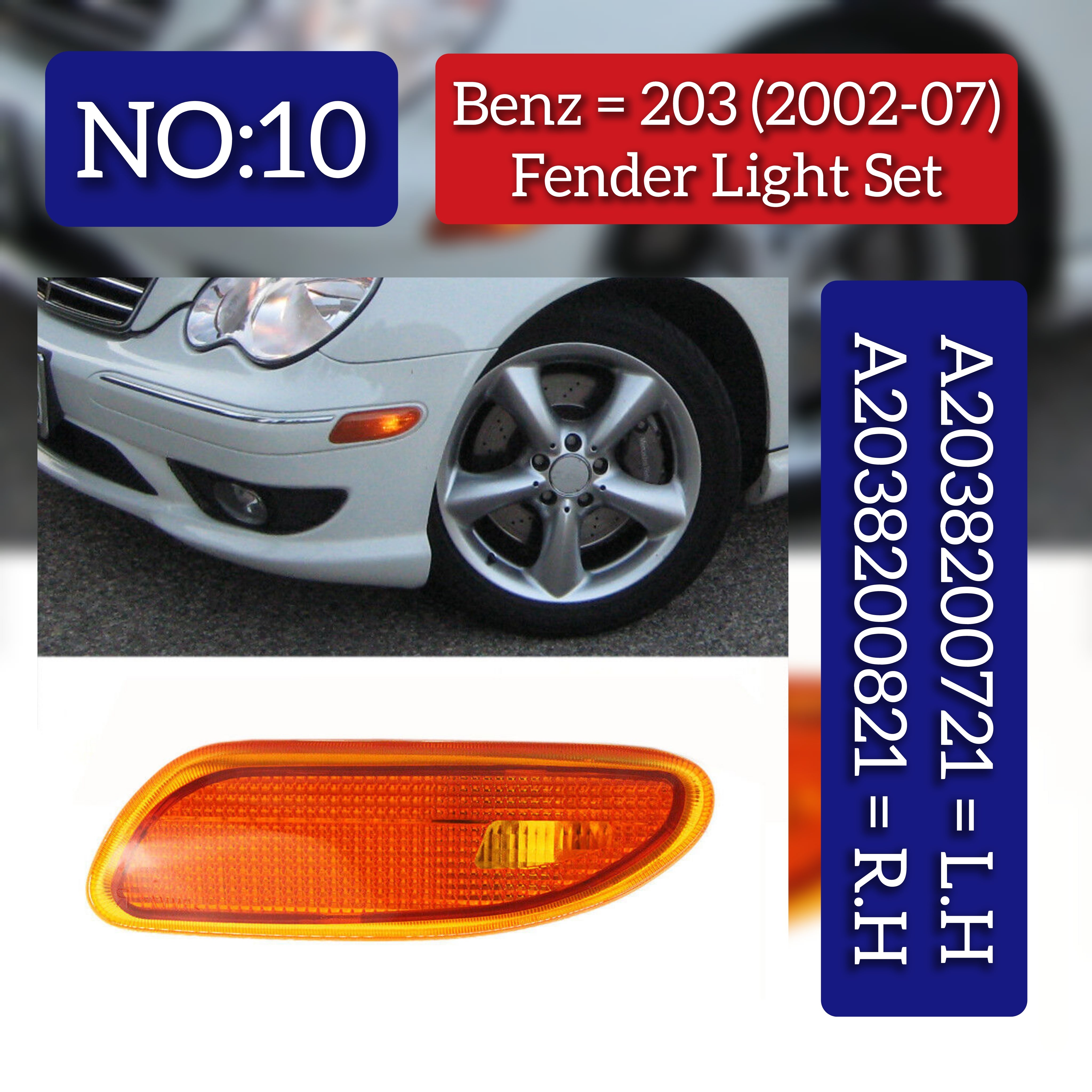 Enhance the safety and visibility of your Mercedes Benz C-CLASS W203 with our Front Bumper Reflectors. Designed to fit perfectly with models from 2002-2007, these reflectors are made with high quality materials and are compatible with the left and right sides of your vehicle. Improve your driving experience today with our Front Bumper Reflectors.
