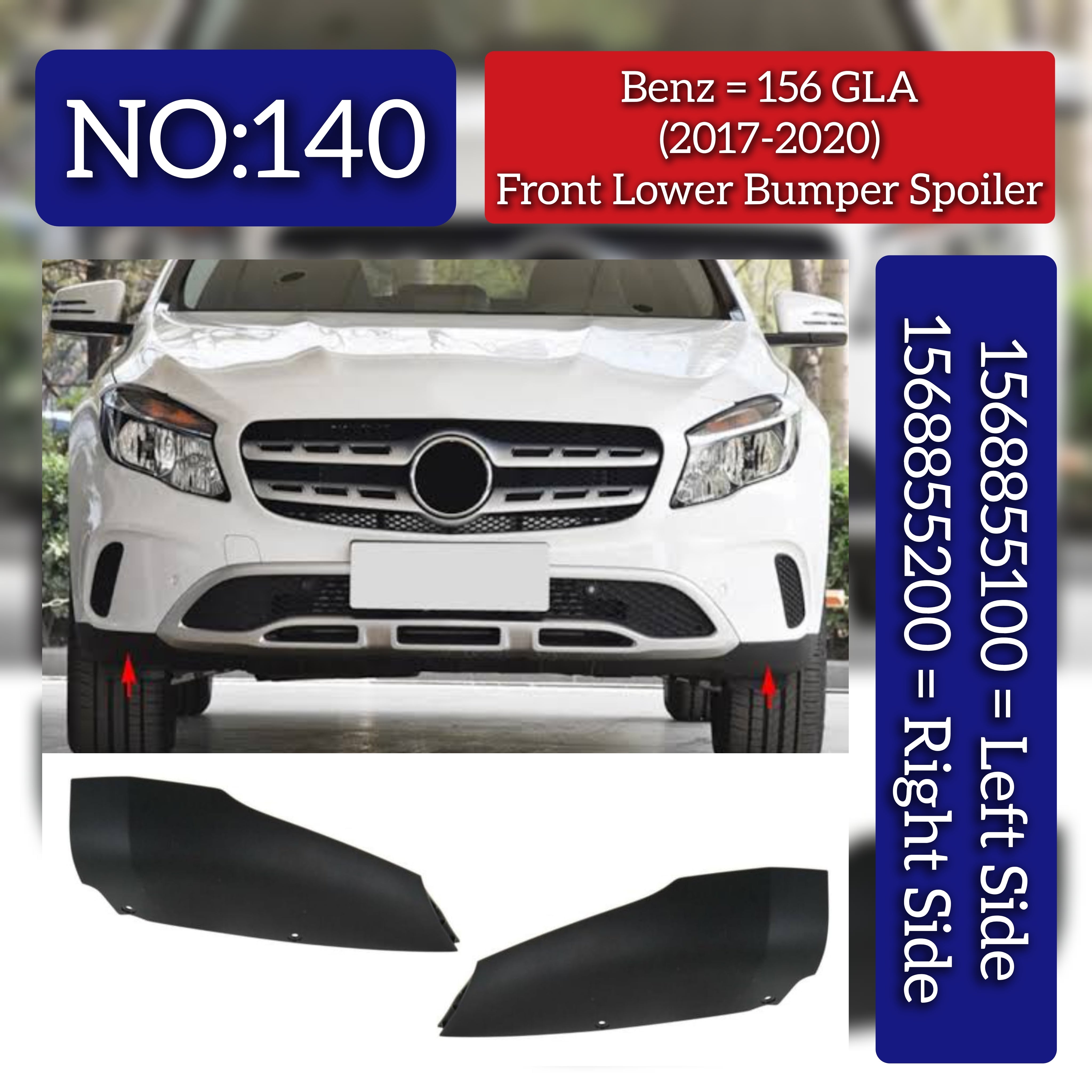 Enhance the aerodynamics and style of your Mercedes-Benz GLA-CLASS W156 (2017-2020) with these precision-engineered front bumper spoilers. Designed as left (1568855100) and right (1568855200) components, they ensure a perfect fit and restore your vehicle’s original appearance. Crafted to maintain structural integrity while improving airflow, these spoilers contribute to better stability and a refined look, making them an essential upgrade for maintaining your vehicle’s performance and aesthetics.