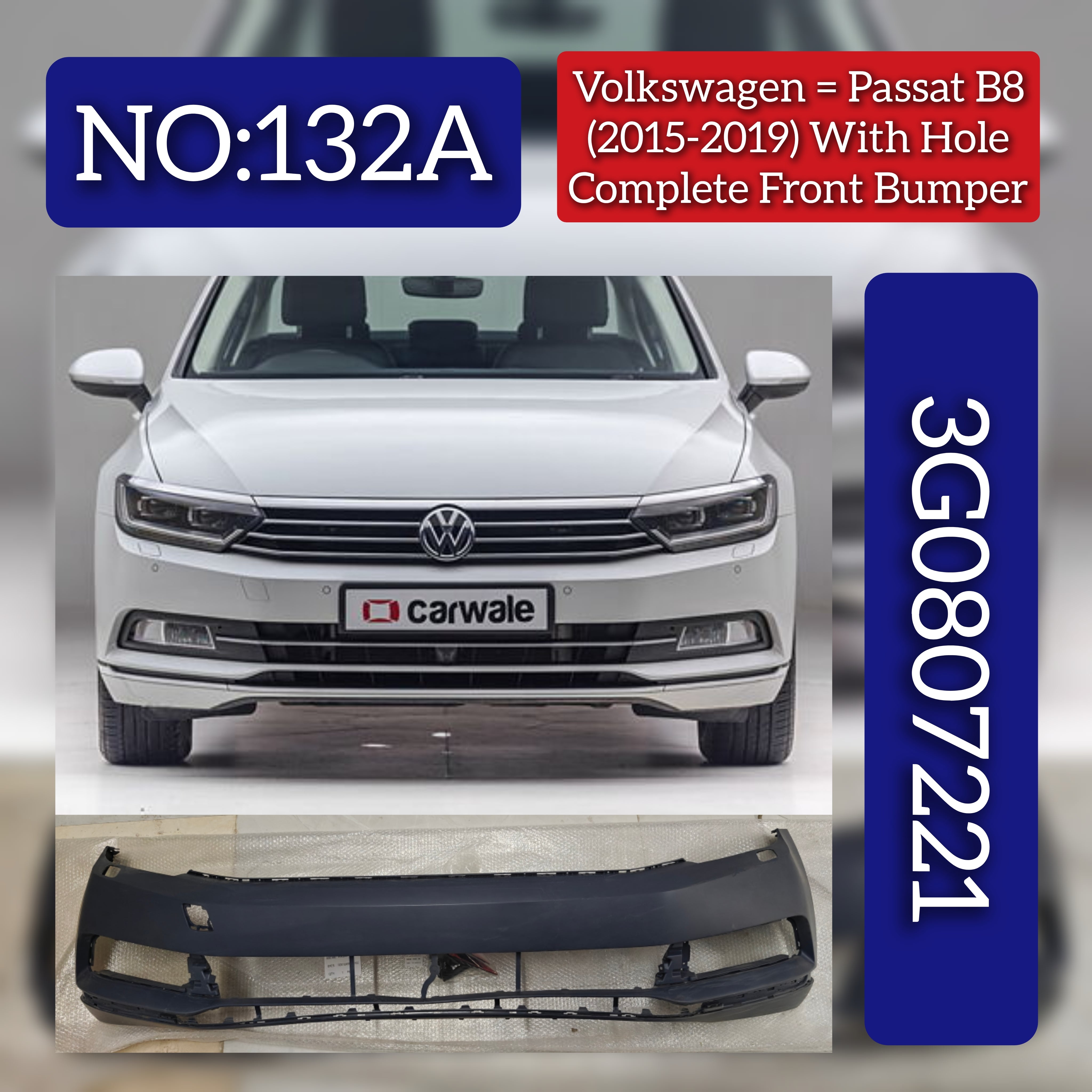 This front bumper with hole, model 3G0807221, is precisely engineered for the Volkswagen PASSAT B8 (362). It offers an exact fit to maintain the vehicle’s original design and safety standards. Ideal for professional bodywork, this bumper facilitates the installation of additional components while ensuring durability and structural integrity.