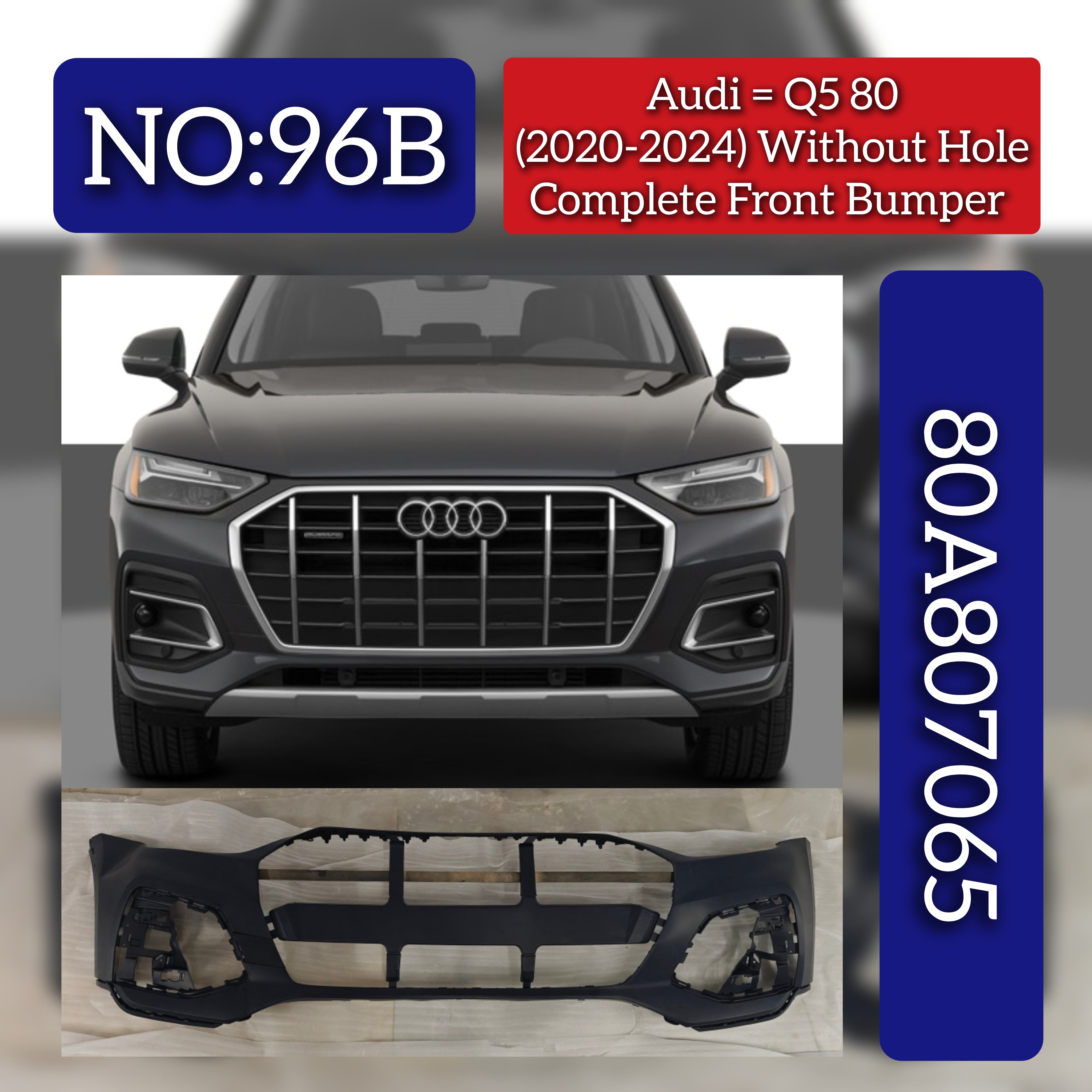 This front bumper (part number 80A807065) is designed for AUDI Q5 models FYB and FYG, ensuring precise compatibility and fit. Featuring a smooth design without holes, it provides a clean, streamlined appearance while maintaining the structural integrity required for effective impact absorption. Manufactured to meet OEM standards, this bumper offers durability and reliable protection for your vehicle's front end. Ideal for replacements or repairs, it upholds the Q5’s aesthetic and safety profile without compromise.