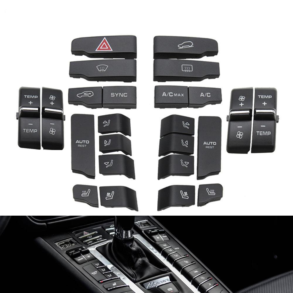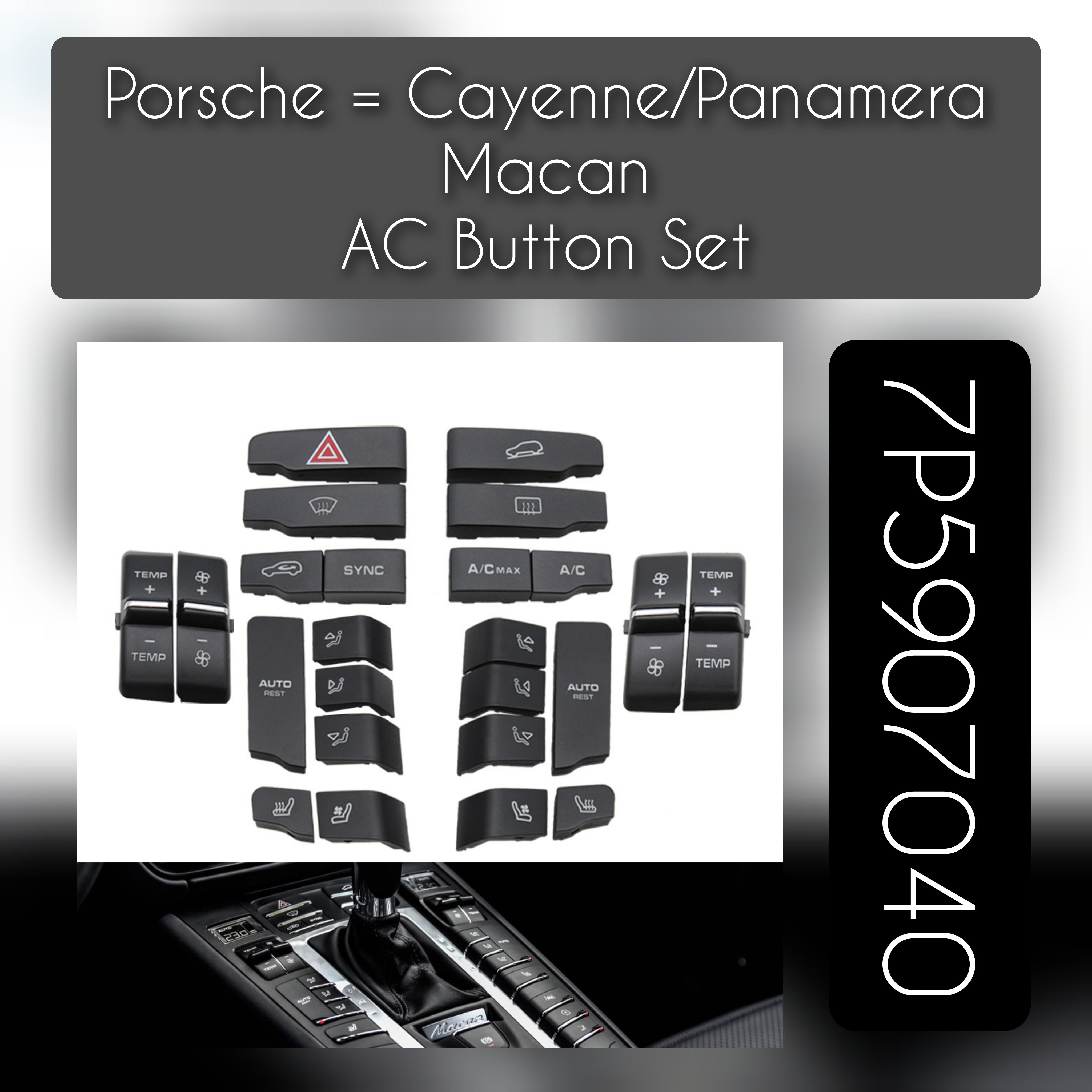 Upgrade your PORSCHE CAYENNE & PANMERA & MACAN with this set of 7P5907040 Front Console Air Conditioning Temperature Ventilation Volume AC Button Caps. Crafted with precision, these caps ensure maximum control and comfort. Improve your driving experience with ease - 100% compatible and easy to install.