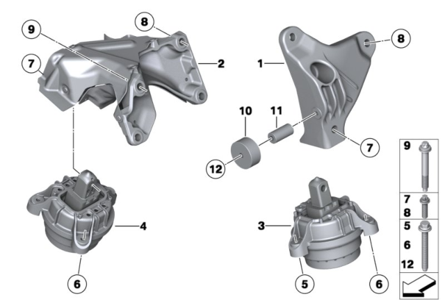 Front Engine Mount Set Compatible With BMW 5 Series F10 & 7 Series F01, F02, F03, F04 Engine Mount Left  22116777365 & Right 22116786528