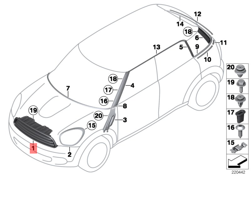 Upgrade your MINI COUNTRYMAN (R60) with this sleek Front Grill Chrome 51139803635. Made with high-quality materials, it adds a polished and professional look to your vehicle. Show off your style and make a statement on the road.