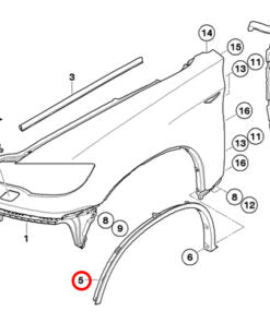 This Front Left Wheel Arch (EYEBROW) is engineered to OEM specifications for BMW X6 E71 & E72 models. Featuring part number 51777176235, it delivers precise fitment and durability. The component protects the wheel well from debris while maintaining your vehicle's aesthetic integrity. Constructed from high-quality materials, this replacement part ensures long-lasting performance and restoration of your BMW's original appearance and functionality.