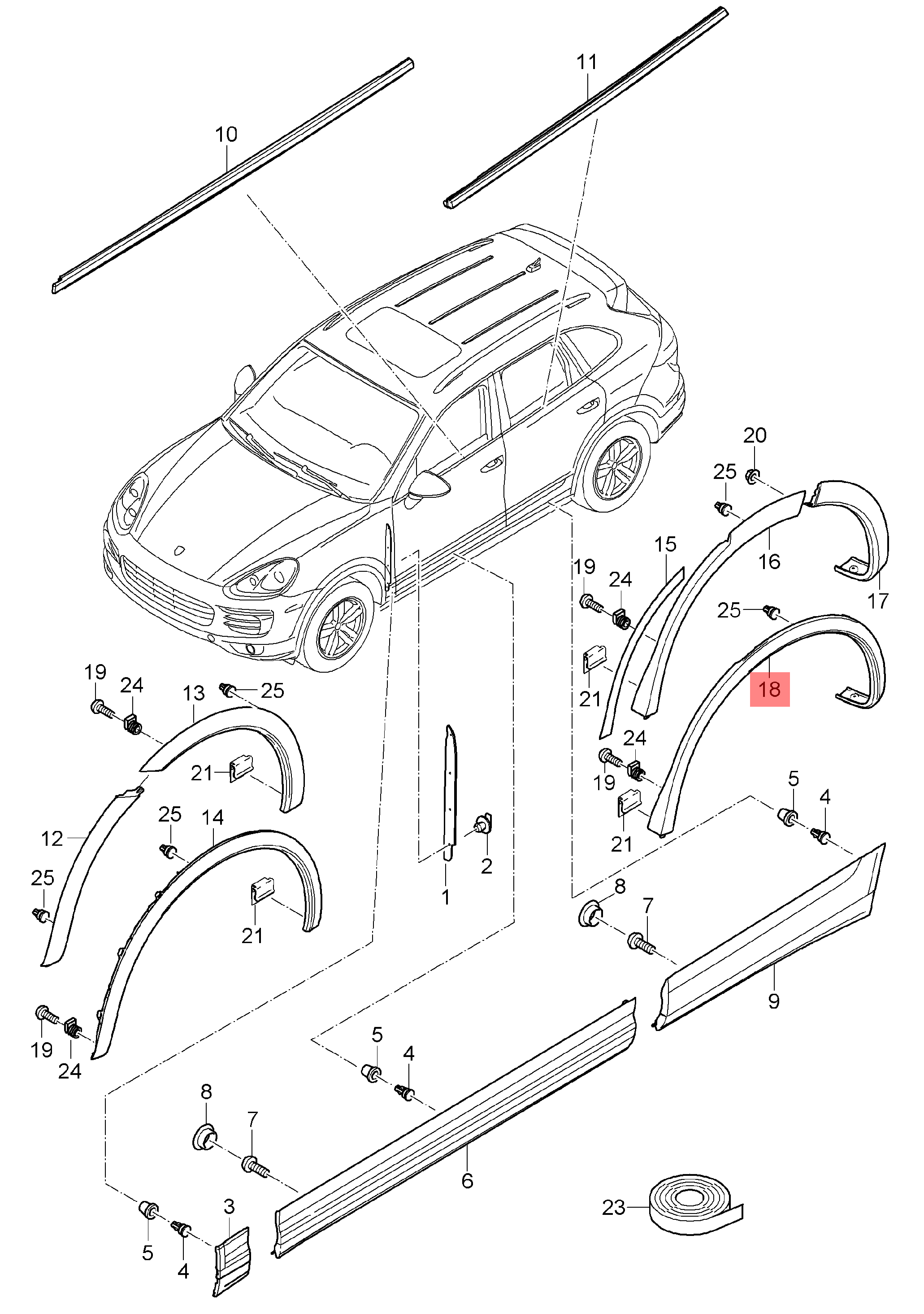 Increase the durability and style of your Porsche Cayenne 958 2011 with this Front Left Wheel Arch (EYEBROW) 95855972720. Made with high-quality materials, this arch is designed to fit perfectly and provide maximum protection for your wheel. Upgrade your vehicle's appearance and functionality with this must-have addition.