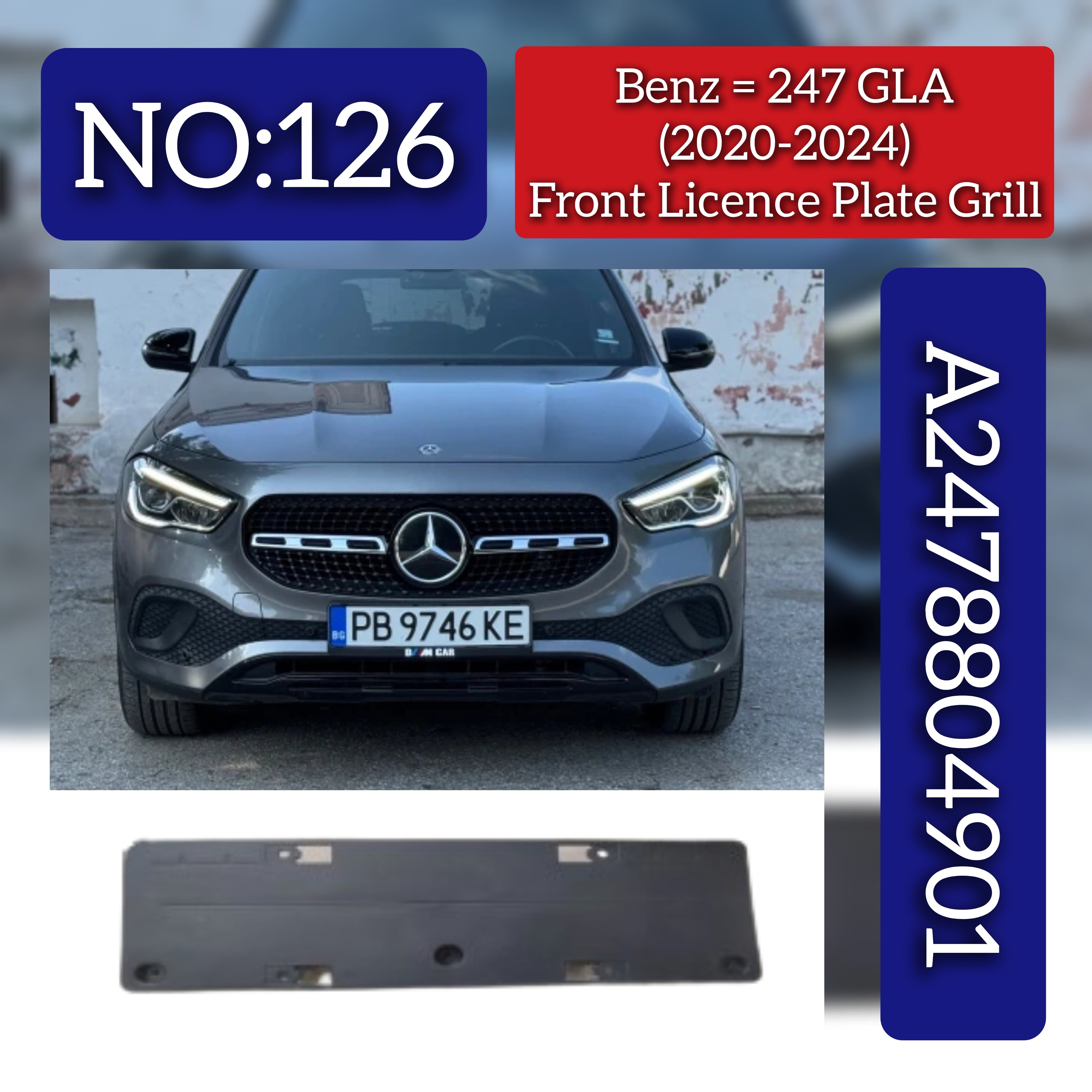 Enhance your Mercedes-Benz GLA Class W247 (2020-2024) with this precision-engineered Front Licence Plate Grill, part number 2478804901. Designed for perfect fit and durability, it ensures secure mounting of your license plate while maintaining the vehicle’s sleek front aesthetics. Crafted to meet OEM standards, this grill offers reliable performance and seamless integration with your car’s design. Ideal for replacements or upgrades, it preserves the original look and functionality of your GLA Class.