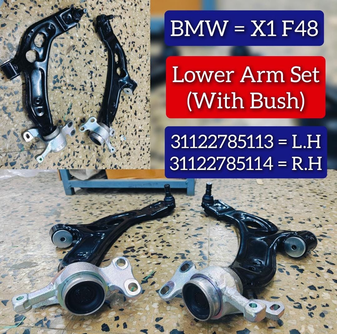 Improve the handling and stability of your BMW X1 F48 2016 with our Front Lower Arm Set. Designed specifically for your vehicle, this set includes both the left and right arms, 31122785113 and 31122785114, for a perfect fit. Experience smoother turns and a more comfortable ride with this upgraded suspension.